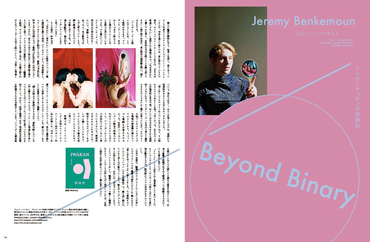 This issue opens with a special visual feature entitled “The Masks of Persona― 二人静,” a photo essay created by up-and-coming photographer Mayumi Hosokura. Taking inspiration from Masako Shirasu’s remarkable book, “The Beauty of Androgyny”— a compilation of essays focusing on the aesthetics of the Noh play—Hosokura expresses the delicate beauty of Noh as it appears before us, crossing boundaries of sexuality and the axes of time to capture for a fleeting moment the transcendent eye for beauty that lives and breathes in Japanese culture.