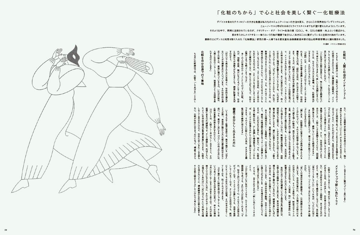 Our second special feature offers interviews with significant people around the world who are challenging a multitude of boundaries, and in our third special feature, we’ll be introducing a form of “cosmetic therapy” based on the belief that cosmetics can contribute to improvements in everyone’s lives.