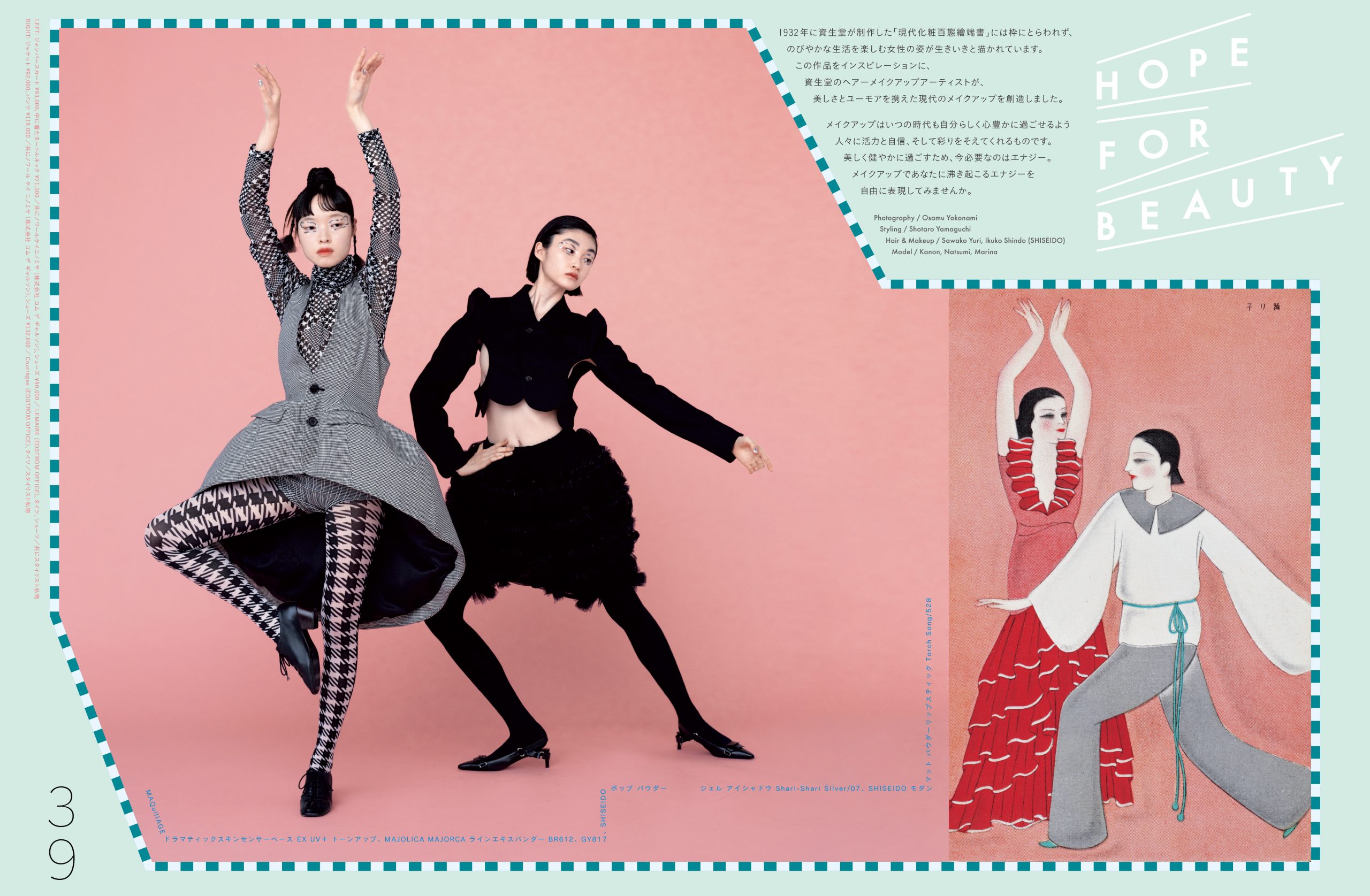 Continuing the tradition of our beauty focus, we proudly showcase "HOPE FOR BEAUTY". Taking inspiration from "Contemporary Makeup in a Hundred Styles," a collectible postcard Shiseido created in 1932 for its customers, our team of expert hair and makeup artists have designed modern makeup styles that encapsulate beauty, whimsy, and sophistication. As the era of mandatory mask-wearing draws to a close, this feature encourages you to rekindle your passion for makeup.