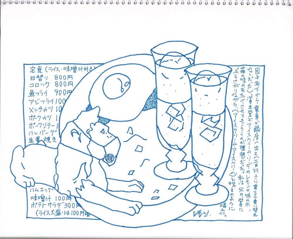 “You know Mari Mori? She’s the daughter of Ogai Mori [a pre-eminent figure in modern Japanese literature], and she apparently loved the lemon ice cream soda at Shiseido Parlour. They still serve it there—do you feel like going with me sometime?”