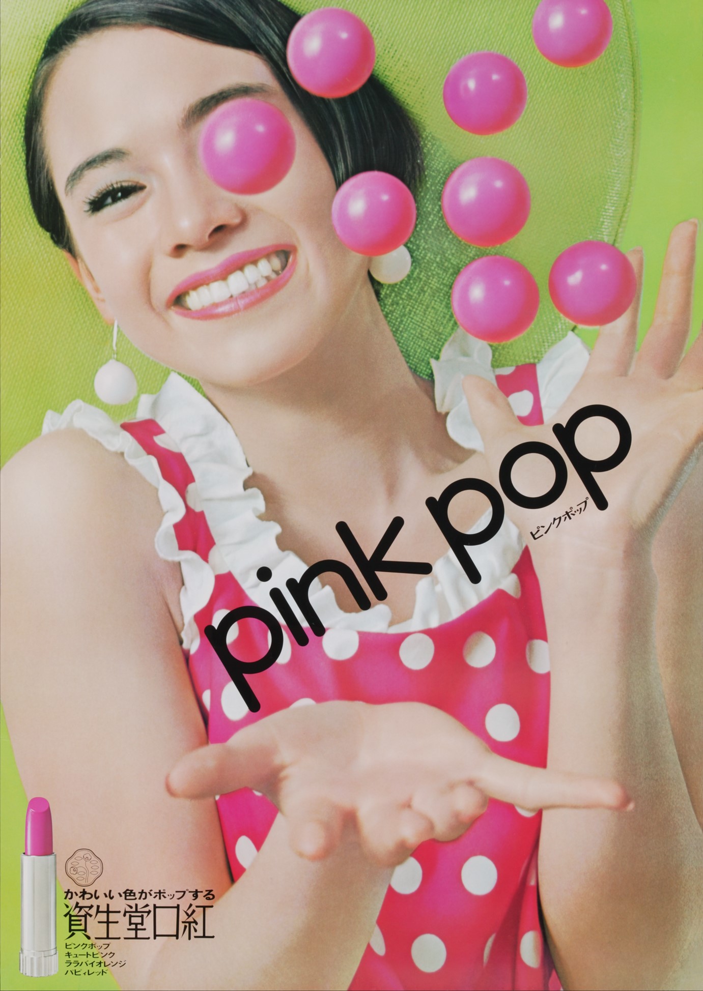 Spring of 1968 introduced Shiseido's “Pink Pop,” an ebullient campaign anchored by a vivid poster featuring a captivating pink ball, an effervescent model in a chic ensemble, and her radiant smile. This iconic visual was designed not just to catch the eye, but also to lift the spirits of all who encountered it.