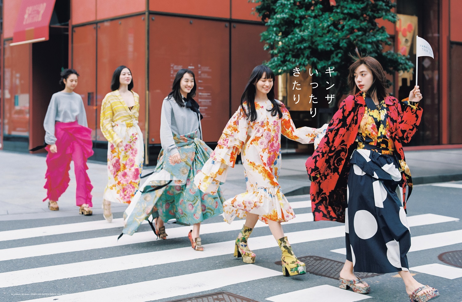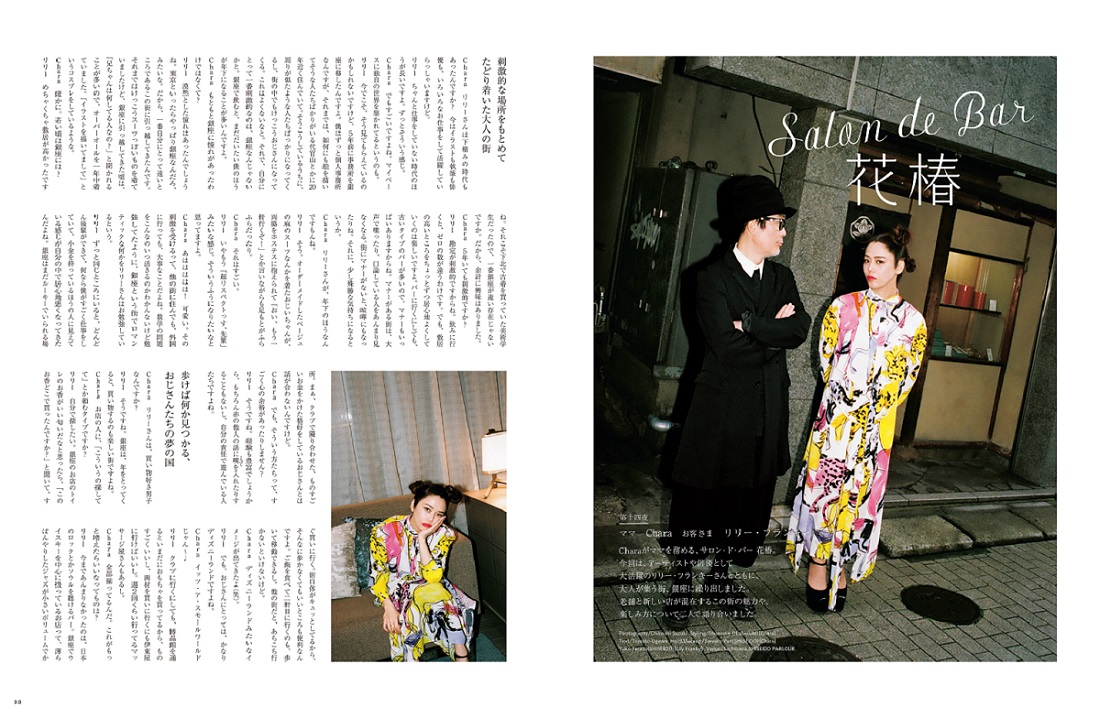 加えて、連載『サロン・ド・バー 花椿』ではCharaさんと、銀座に事務所を構えるリリー・フランキーさんが「銀座の魅力と楽しみ方」について語りました。ファッション特集『TOKYO STORY』では、銀座の街並みを背景に、モダンに進化した“みゆき族”の群像を描きます。