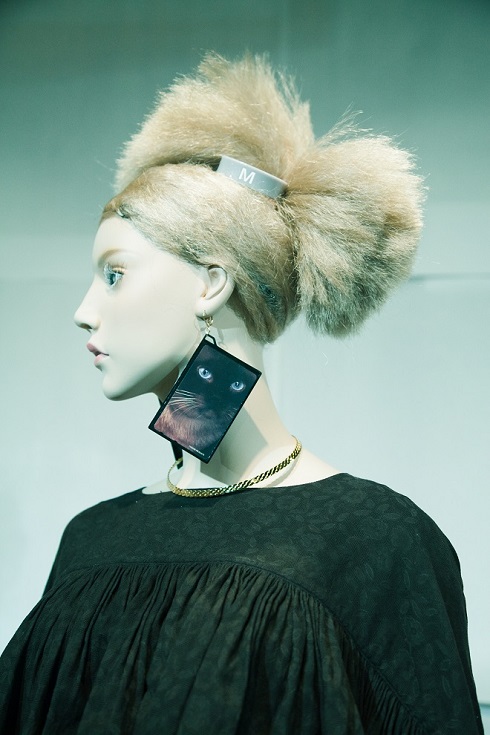 メークは全体に色味を使わず、ナチュラルに仕上げながら、細部に可愛らしさやキッチュさを取り入れることで、新鮮な印象を与えている。特に、印象的なのはホワイトのマスカラ使いだ。モデルのみならず、マネキンにもすべてホワイトのまつ毛が施されていた。