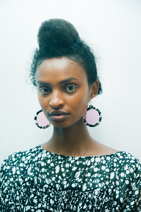 ヘアは、プリミティブなムードを今らしく打ち出したスタイル。大きなヘアピンをポイントにしたり、ムスリム風ヒジャブ・ドレスを頭に乗せるなど、ユニークな発想でスタイリングの幅が広がる。