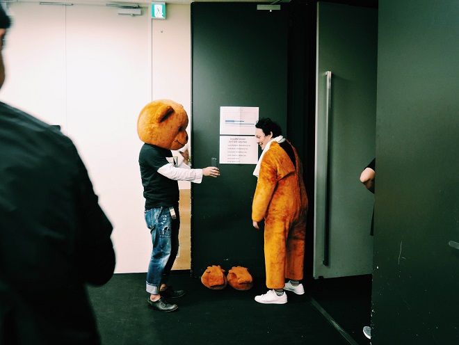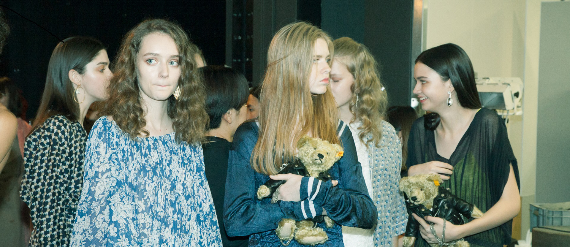 トラッドをベースとしたスタイルに、優雅なシルエットと優しい素材でスタイリッシュな感覚をプラスしたウェア。面白かったのは、デザイナーの熊切氏にちなんでクマのモチーフが随所に散りばめられていたこと。ライダーズを着たティディベアのチェーンバッグやカギ爪をあしらったサンダルなど、大人の少女心をくすぐる仕掛けがたくさん感じられた。そして、ショーの最後には、クマの姿になったメンバーの生バンド演奏も行われた。