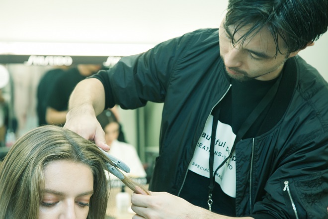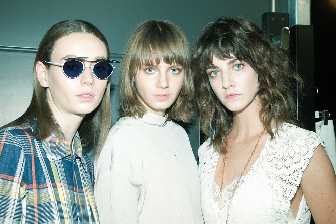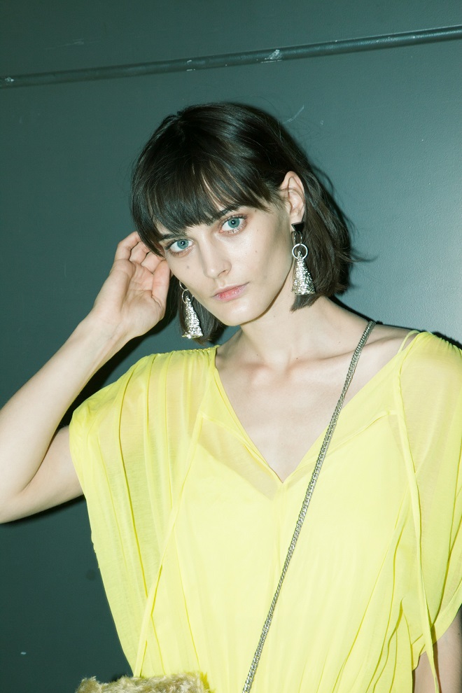 ヘアについては、自然なウェーブを生かしたエアリーヘア、ゆるめのカーリーヘア、(かつてのソバージュより自然でクセ毛っぽさが強い感じ)、ミニマムなストレートの3パターン。どれも、柔らかで爽やかで、イノセントな遊び心を象徴しているかのようなスタイル。ブランドのファッションにもマッチしていた。