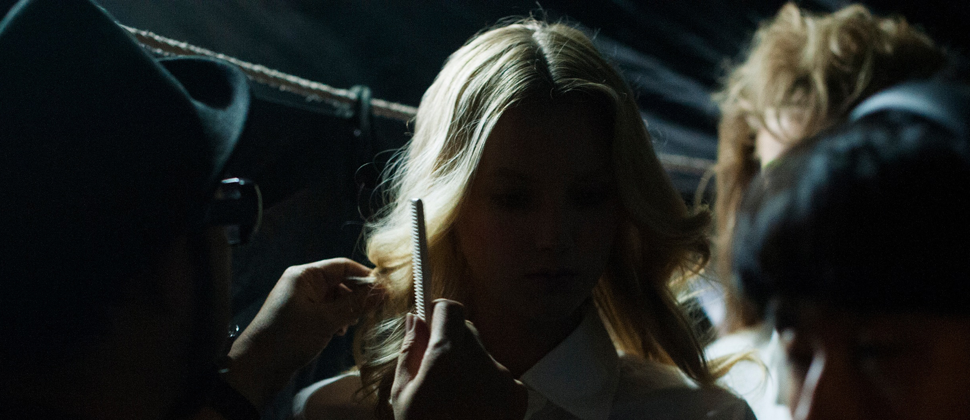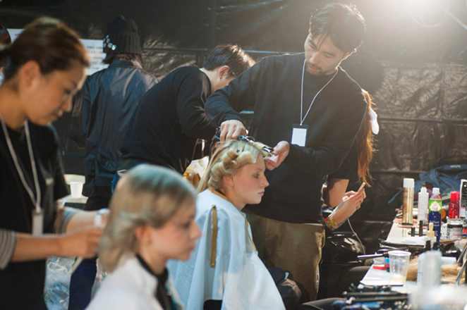 今回とくに際立っていたのは、モデルたちがとにかく楽しそうだったということ。普段、控え室でモデルたちは長きにわたる待機時間のため、たいていはむすっと下を向いてスマホをいじっているのだが、今回は自身に施されるメーキャップの行方を興味津々に目で追っていたり、お互いのメークを見比べて写真を撮ったりと大いに盛り上がっていたのだった。