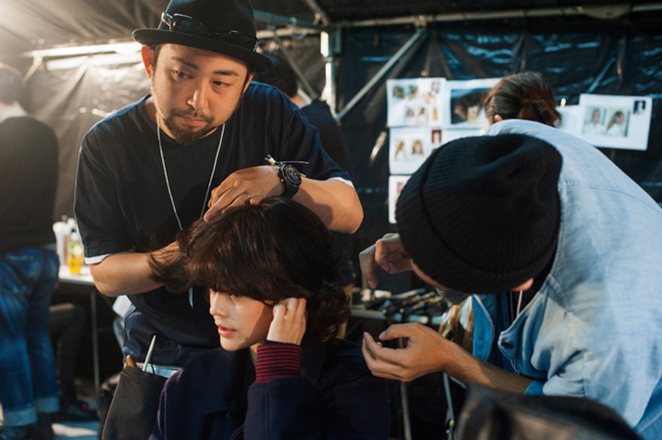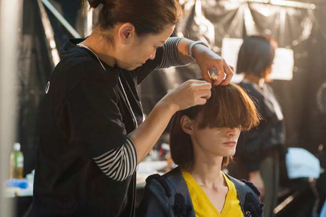 「今回はメーキャップが超(!)重要なんです」と坂部が言うように、いつにも増してヘア&メーキャップの力が問われた今回のコレクション。資生堂トップヘア&メーキャップ アーティストの計良宏文をチーフに、岡元美也子、大久保紀子、鎌田由美子、鈴木節子らトップアーティストが集結し、各年代のスタイルを完全再現した。