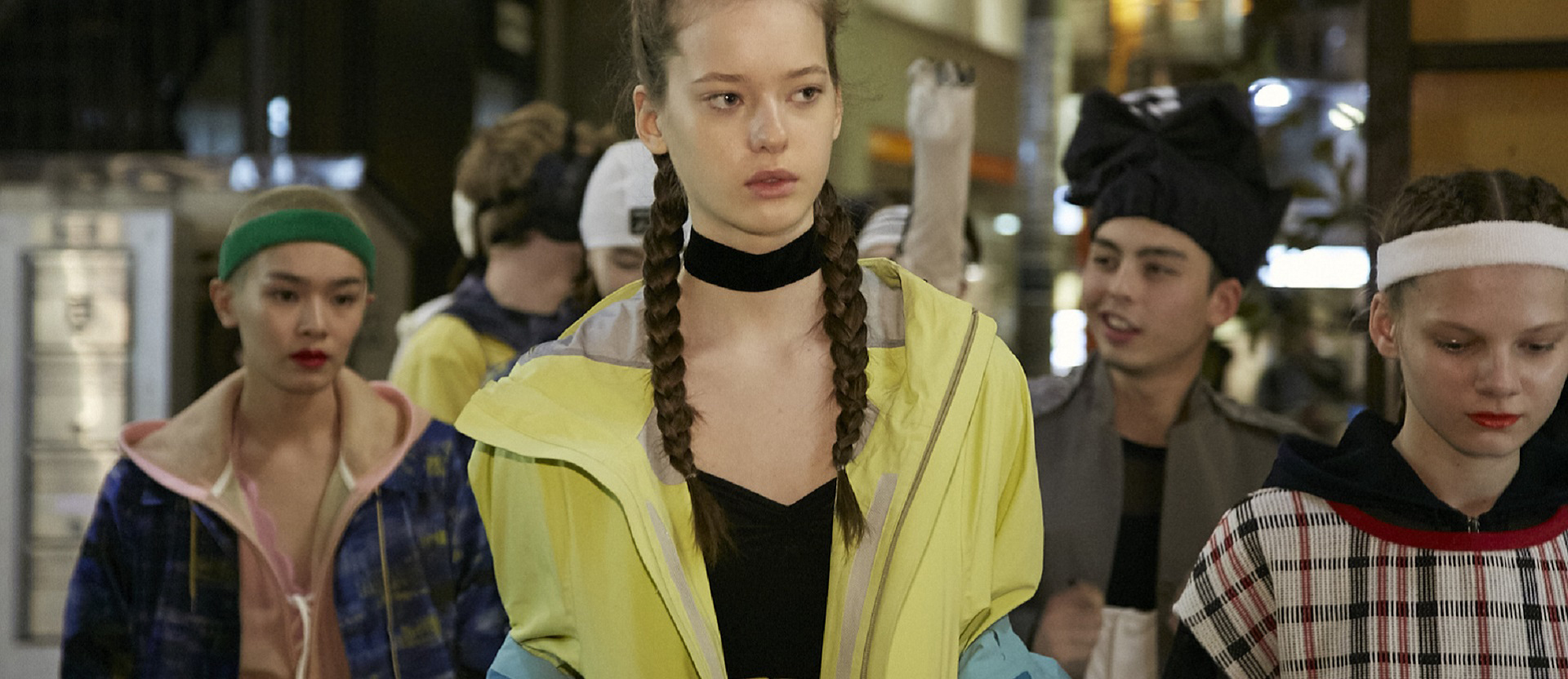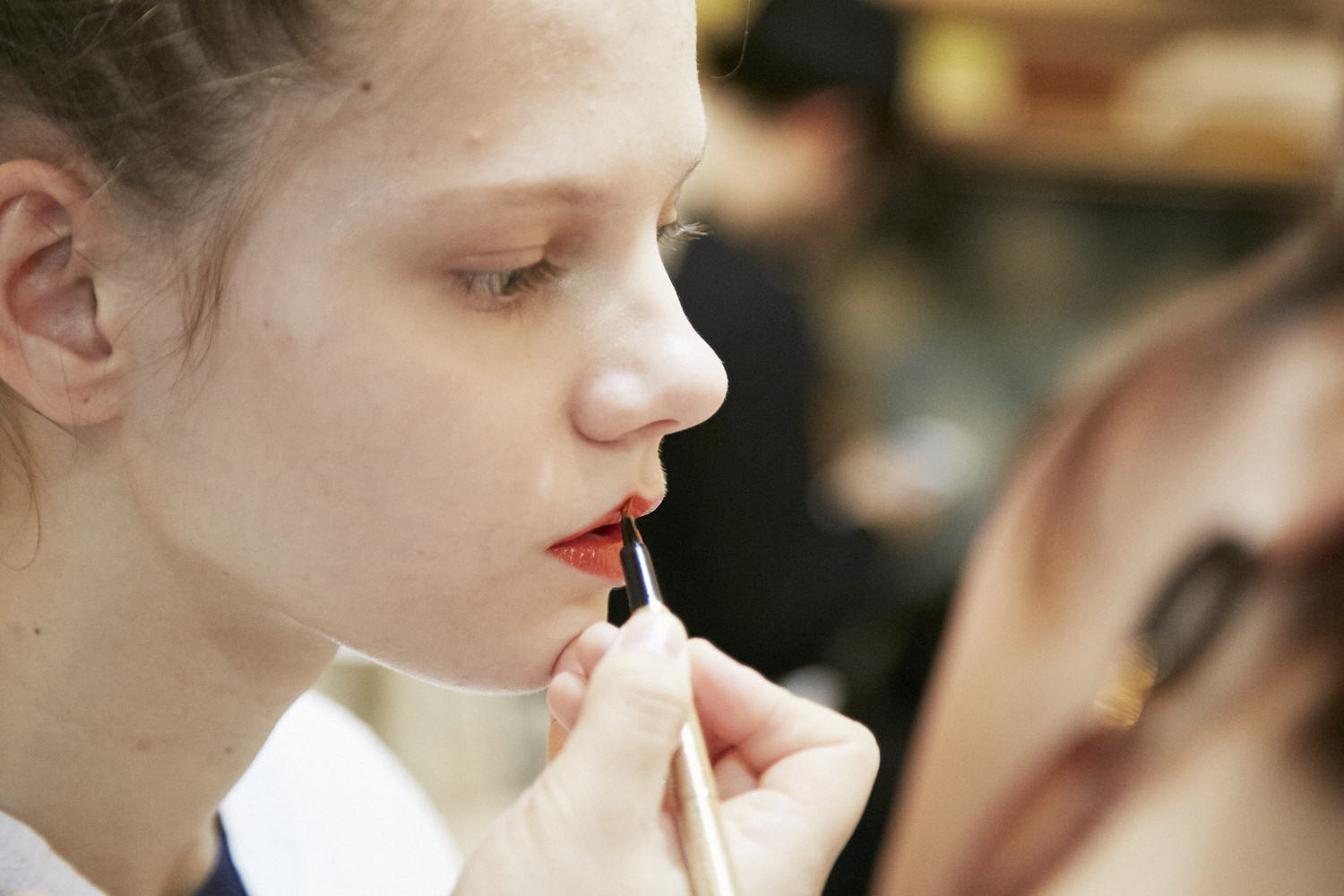 チーフヘア&メイクをつとめたのは計良宏文(SHISEIDO)。ストリートとスポーツを掛け合わせたウェアに合わせて、強さ×かわいらしさを意識したメイクは、モデルの個性に合わせ一人ひとりメイクを変えている。女性らしさを感じさるパールでグロッシーな肌に、ヴィヴィットなリップなどのポイントを絞り、アクセントをオン。カラーもモデルに合わせ、赤、ショッキングピンク、オレンジと各々に合うものを選択。アパレルと同じく、メイクも、個々の個性を際立たせたものが、現代女性らしい新トレンドといえるかもしれない。