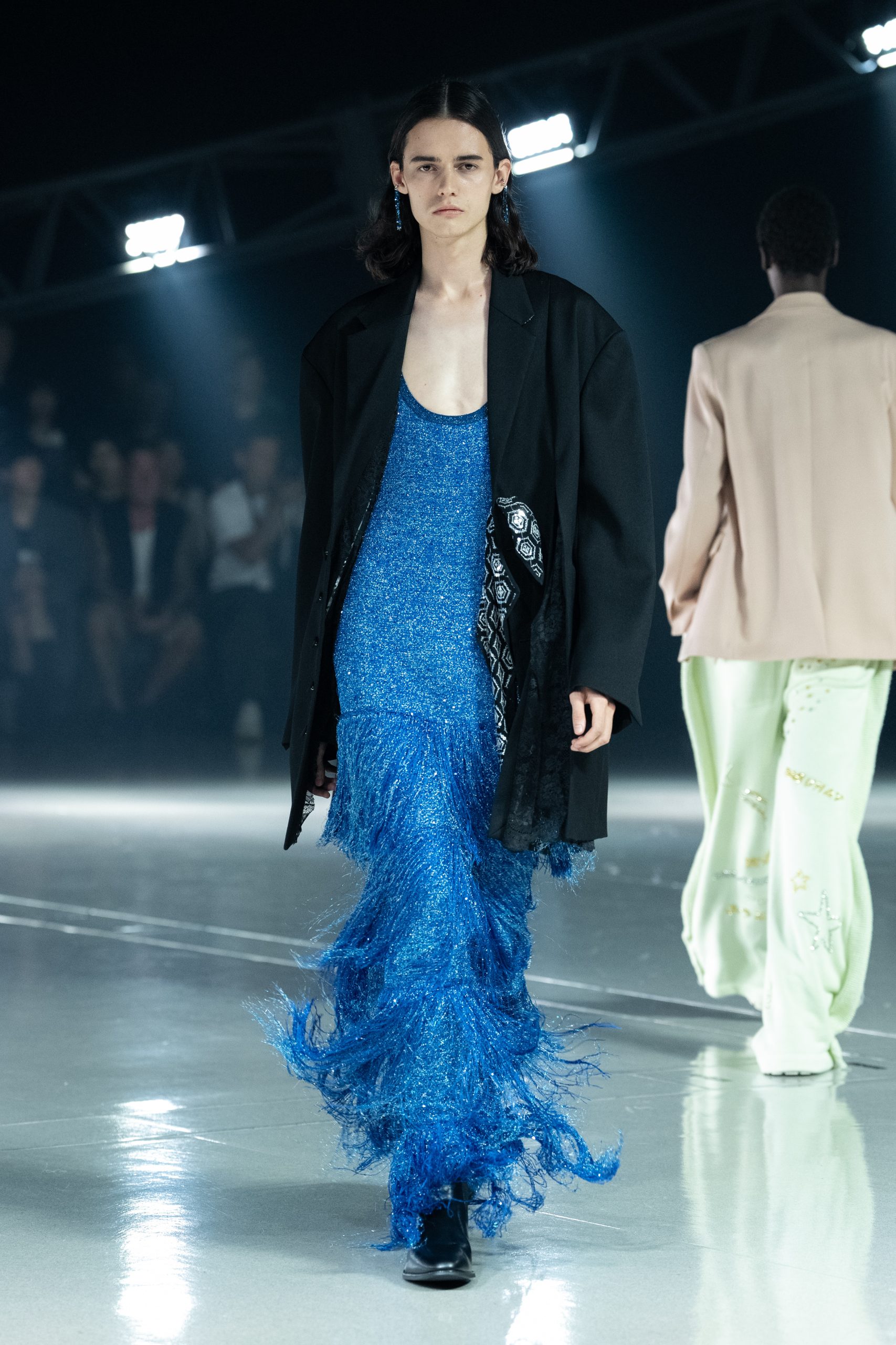 「男女問わず似合う人が着てほしい」というサカイ氏は、自身も普段よくメンズ服に袖を通す。ブランドが掲げるのは“女性像”よりむしろ”人間像”だそうで、モデルの個性だけを頼りに男女比を気にせずキャスティングしたところ、ちょうどショーに出演するモデルの半数が男性となったのだという。