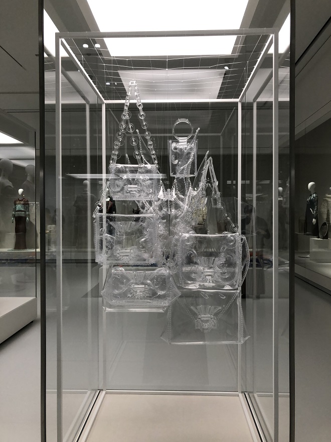 時間軸を超えた構成の中でもたしかに感じられるのは、マメ クロゴウチの筋の通ったデザイン思考、クラフトマンシップです。衣服をつくることの前提にある「機能性」に立脚しながら、じっさいに衣に身を包む女性が誇りと喜びを感じられるような装飾を施すこと。ブランドが掲げる“タイムレス”な服を作るために欠かせない要素です。さまざまな社会事象の変化がある中でも、黒河内さんがこの10年のあいだに自身の内面を深く見つめながら美を探究し、日本各地の伝統的な生産工場と手と手をたずさえ日本産の創作を続けてきたこと、そのすべてが展示の随所に表れています。