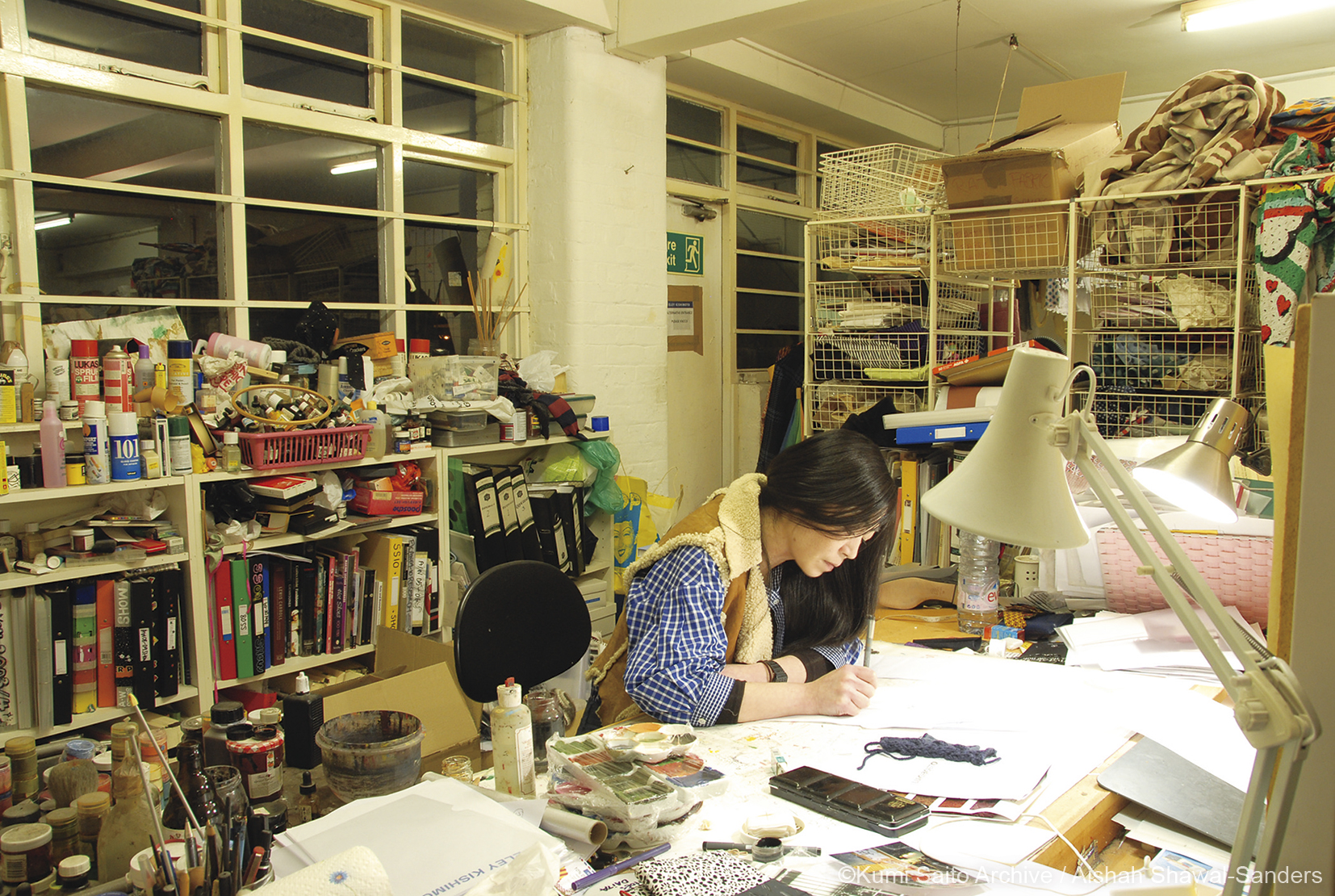 なかでも、斎藤が自身の作品として2016年に撮影した閉鎖直前のアトリエの写真は、イ-リ- キシモトのクリエイションの現場に触れる貴重なア-カイブです。手描きによる柄のデザイン、シルクスリ-ンの設備を備えての生地のプリントやサンプルの縫製まで、手仕事の特別感を大切に、アナログなものづくりを貫いたブランドの全貌が見え隠れします。