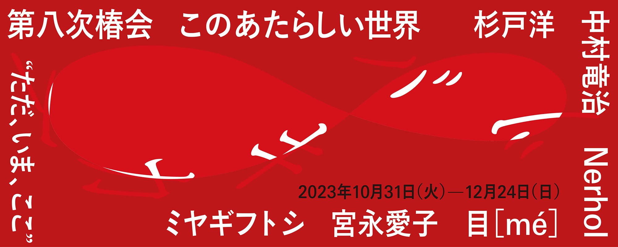 2021年にスタートした第八次椿会のメンバーは、杉戸洋、中村竜治、Nerhol (ネルホル)、ミヤギフトシ、宮永愛子、目[mé]。この6組は、ジャンルを超えた活動やコラボレーション、チームでの制作などを行う、今の時代を代表するアーティストたちです。2021年の「触発/Impetus」、2022年の「探求/Quest」のテーマに続き、最終年となる2023年は「昇華/ Culmination」として、3年間で構築したメンバーの関係性や経験をもとに、それぞれの集大成となる作品を新たに作成し、昇華する展覧会となります。