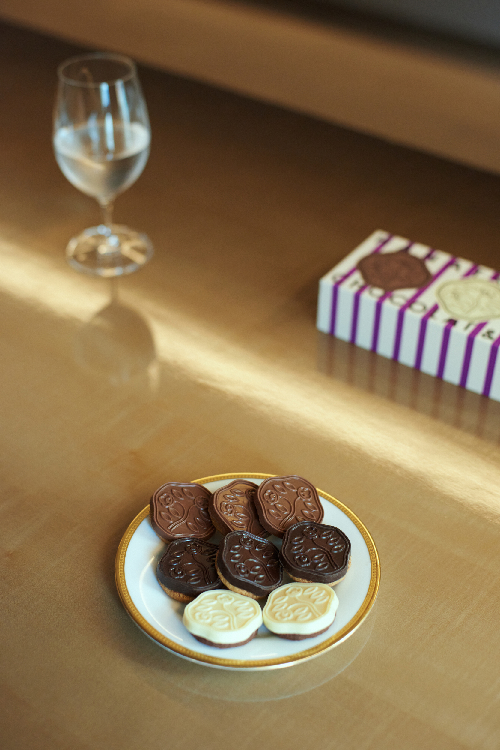 色に関しては、最初チョコレート色で進めていたが、デザインを進めていく過程で、ふと「紫」が服部氏の頭に思い浮かんだのだという。普段の仕事でもあまり紫を使うことはなかったそうだが、チョコレートの濃厚な味わいと高級感にぴたりとマッチした。
