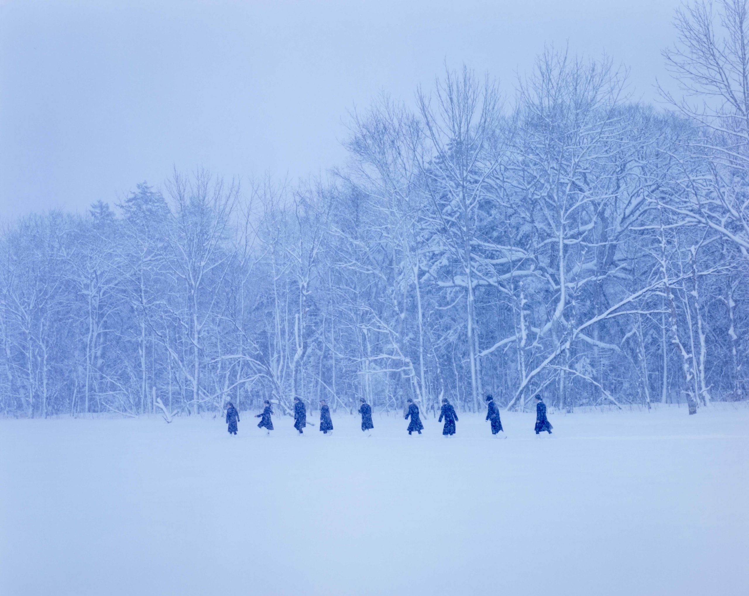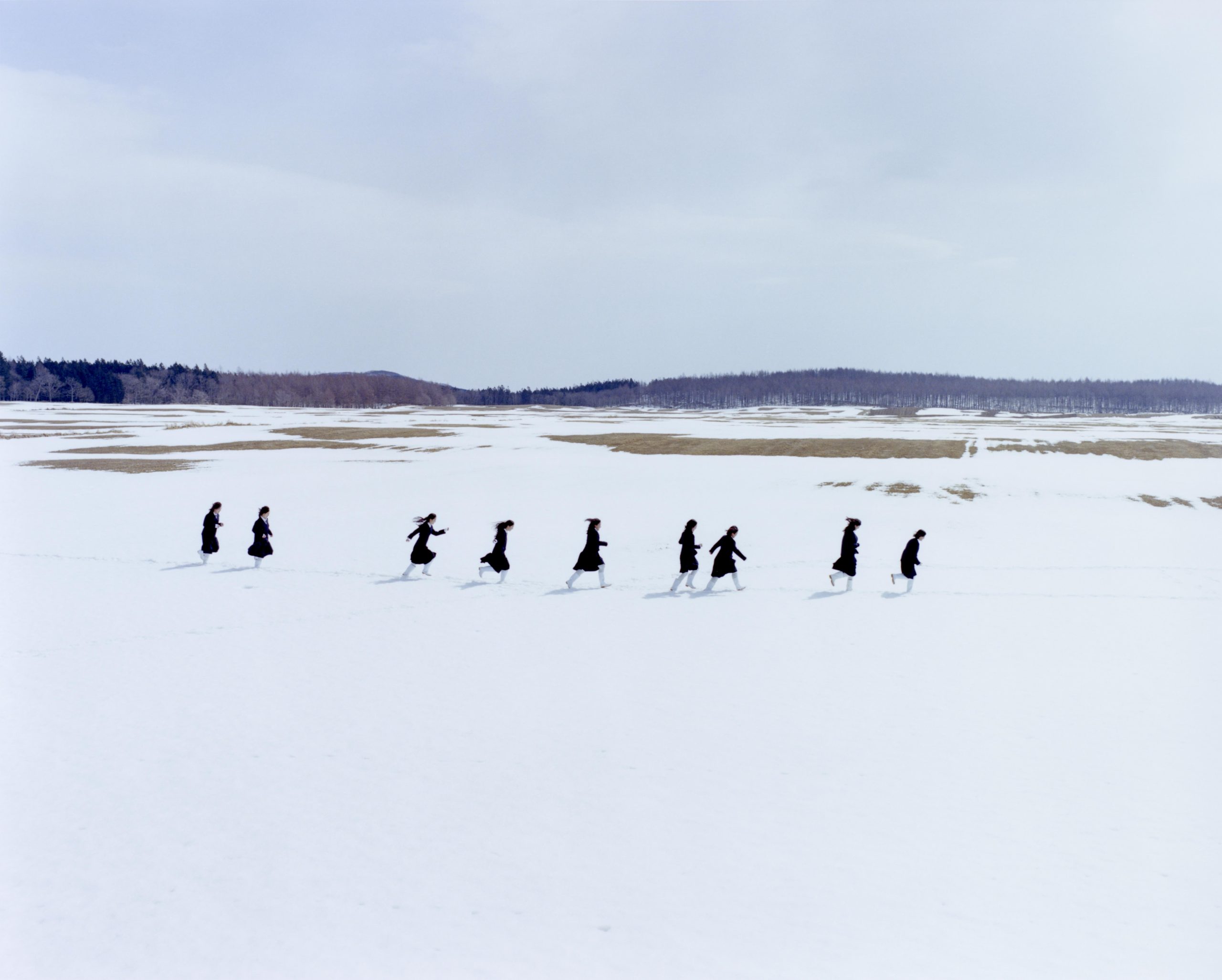 シリーズの最新作が、今回の「Assembly Teshikaga」です。深い森と美しい水に囲まれた北海道・弟子屈(てしかが)を舞台に撮影された、雪深い大地を踏み締め、ひたむきに進んでいく制服姿の少女たち。彼女たちの匿名性・集団性をベースにしつつも大自然の厳しさ、畏怖を喚起させるような崇高さといった側面をより一層感じさせる作品には、無垢な生命の力が切実にあらわれています。