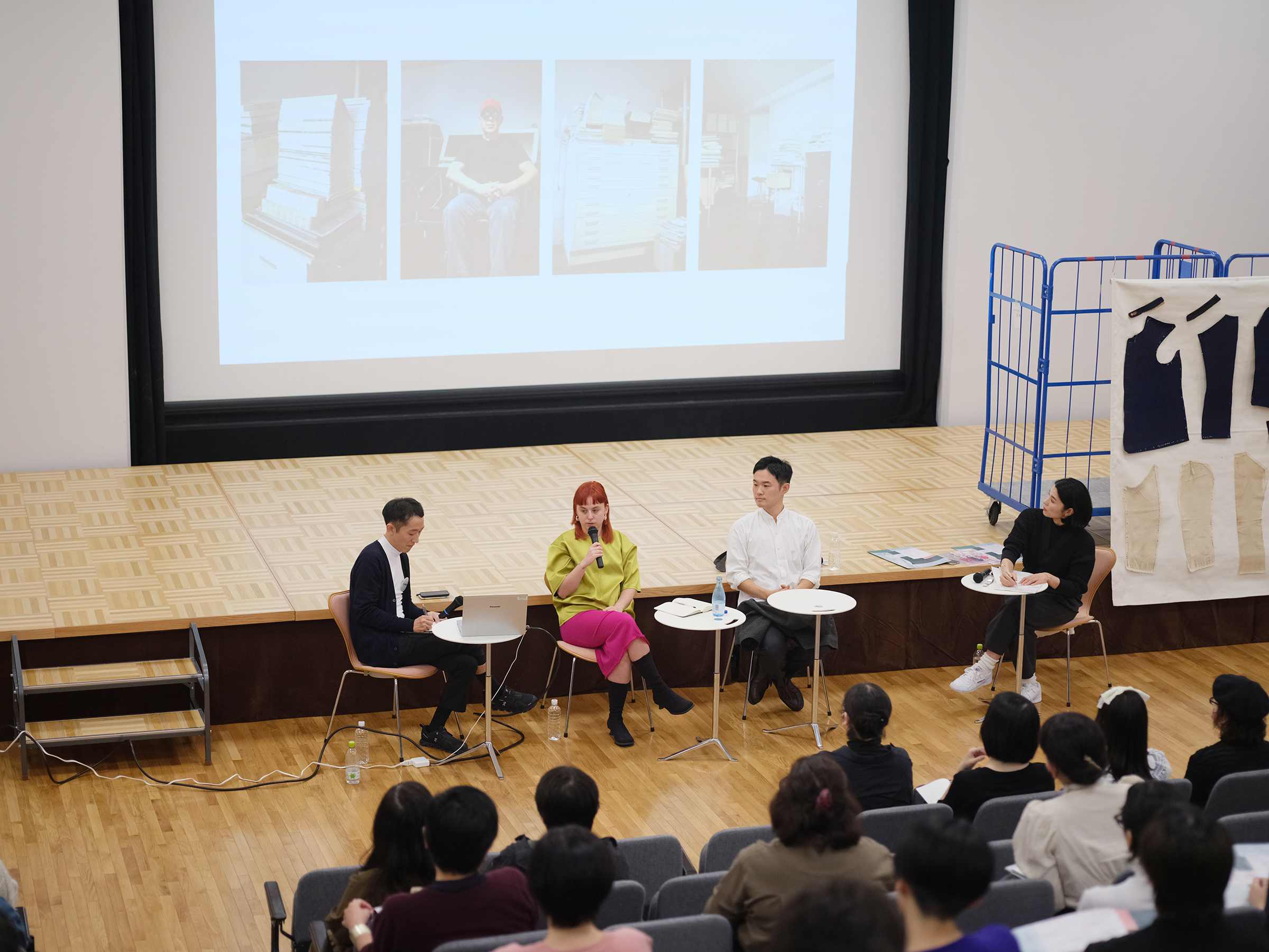 会期初日には、エリスさんと衣服標本家、長谷川彰良さんが”アーカイブ”を基にしたクリエーションについてのトークイベントを行いました。当日、長谷川さんのコレクションの1つである100年以上前の衣服標本も展示し、実際に手を取り、過去の魅力に触れる貴重な機会となりました。