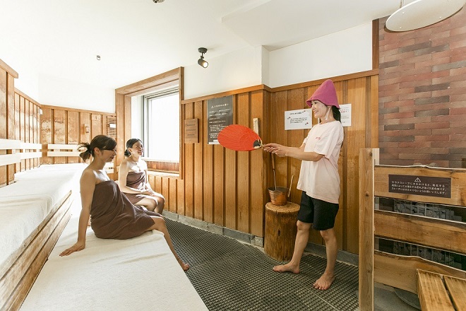 東京ドームのすぐ横にあって天然温泉が楽しめるスパ ラクーアでは女性は3種類のサウナが体験できます。中でもオススメは露天風呂の隣に新しくできたフィンランドサウナ「ヤルヴィ」! ほんのりアロマが香るサウナ室内はテレビが無くうす暗くて静かでとても落ち着きます。しかもここはサウナストーンにアロマ水をかけて蒸気を発生させ、室内の湿度を調整する「ロウリュ」ができる貴重なサウナ。本場フィンランドではサウナでロウリュができるのが当たり前なのですが、日本ではサウナストーンに水をかけることを禁止している施設がほとんどなので、実はこのロウリュが自分でできるサウナというのはまだ数少ないのです。ここスパラクーアのヤルヴィは本場フィンランド式サウナを都心で体験できるのでオススメです。