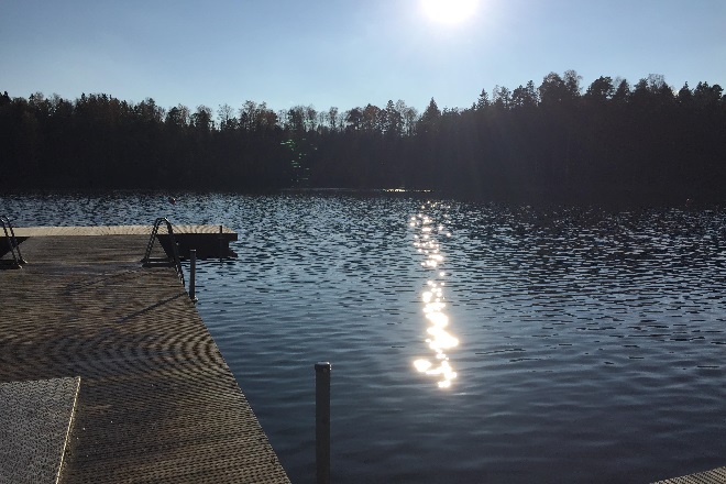 そして次に向かったのが、ヘルシンキに近い郊外・ヴァンターの大自然の中にある、クーシヤルヴィ(Kuusijärvi)というレクリエーション施設。私たちはフィンランド人の友人に車で連れていってもらったのですが、ヘルシンキ中央駅からもバスで30分程で行けます。ここは国立公園のすぐそばにあり、森に囲まれた湖のほとりにある施設で、一番の売りは今では珍しい伝統的なスモークサウナです。スモークサウナとは、2000年以上も前からあると言われている原始的なサウナで、煙突のないサウナ小屋の中でサウナストーンをのせた薪ストーブに何時間にもわたり、絶えず薪をくべ続け、室内に煙が充満し充分に熱くなったところで部屋のドアを細く開け、そして煙を出しきってようやくサウナに入れるという、とてつもなく時間と労力の要るサウナなのです。加えてスモークサウナの準備には安全性を考慮したテクニックも必要とされるので、もちろんそこは施設のスタッフの方がやってくれるのですが、手間ひまかけて暖めてくれたスモークサウナに入れるということ自体が、とっても「ありがたや〜」な体験なのです。