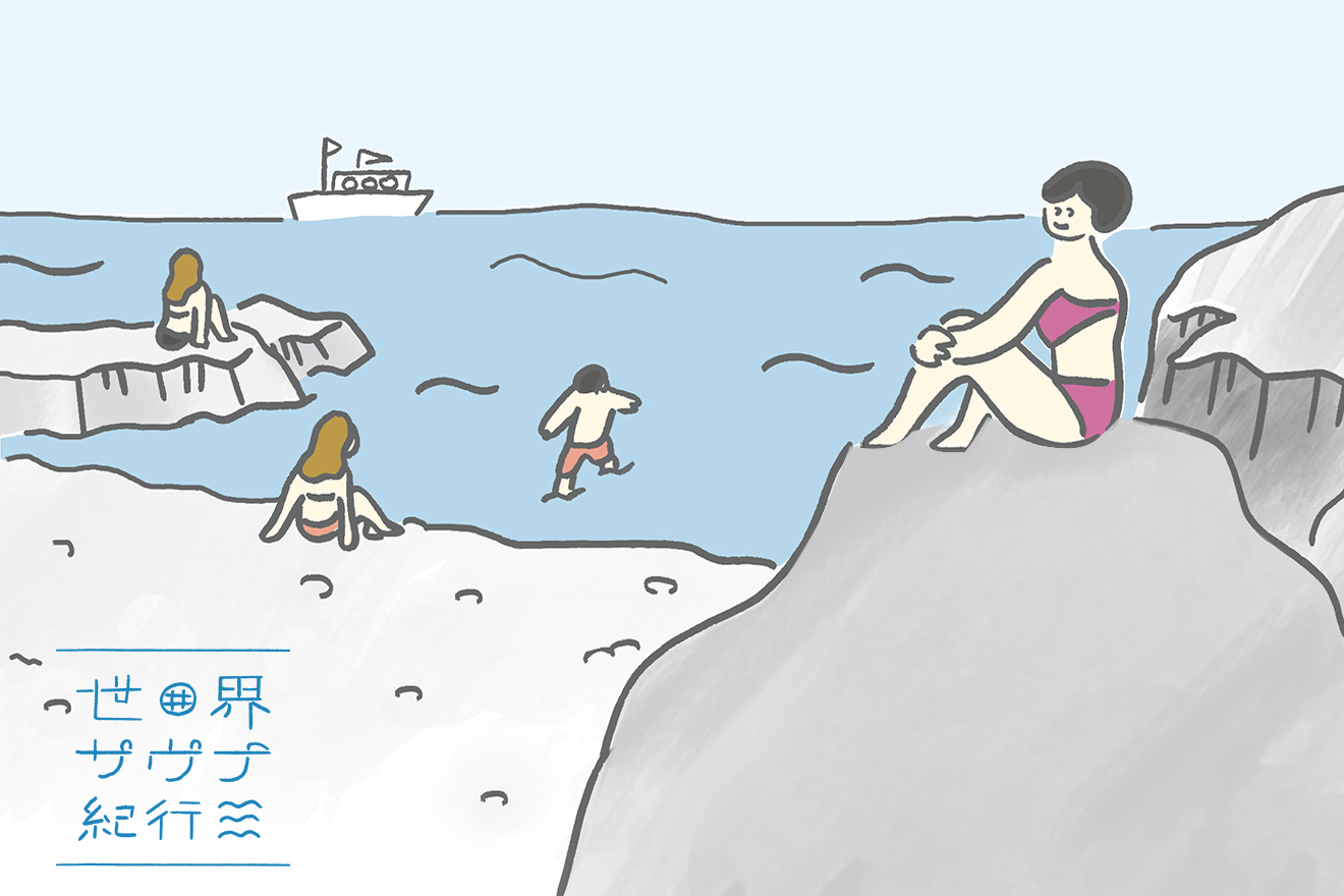 唐突ですが私、「三度の飯より移動が好き」と言っても過言ではないほど移動することが大好きです。もちろん旅をすることが好きなのですが、旅の醍醐味は目的地で何かをするということよりも移動中のバスや電車から流れる景色をボーッと眺めているときだったりして、そんなときになんとも言えぬ幸せを感じるのです。そんな至福のひとときをサウナに入って心身共に調律された状態で過ごせたらどんなに幸福なことか! と夢見ていたらついに夢が現実に。前回のスウェーデンから次の目的地フィンランドへと向かう移動手段にフェリーを選んだのですが、なんとそのフェリーにはサウナがついていたのです。さすがサウナが盛んなバルト海周辺国を行き来するフェリーです。フェリーと言うよりは豪華客船と呼ぶにふさわしいその巨大な船に乗船するやいなや船内を探検していると見つけました、サウナへの入口を。入るとそこはジャグジーを中心とした、お風呂というよりは公衆プールのような空間が広がっています。皆さん水着を着ており、はしゃぎ回る子どもたちとお酒を飲みながらジャグジーでくつろぐ人々でごった返しています。「あれ? なんか求めていたのと違う……」と思いつつも受付を済ませロッカーで水着に着替えてシャワールームへ入ると、そこにサウナ室がありました。