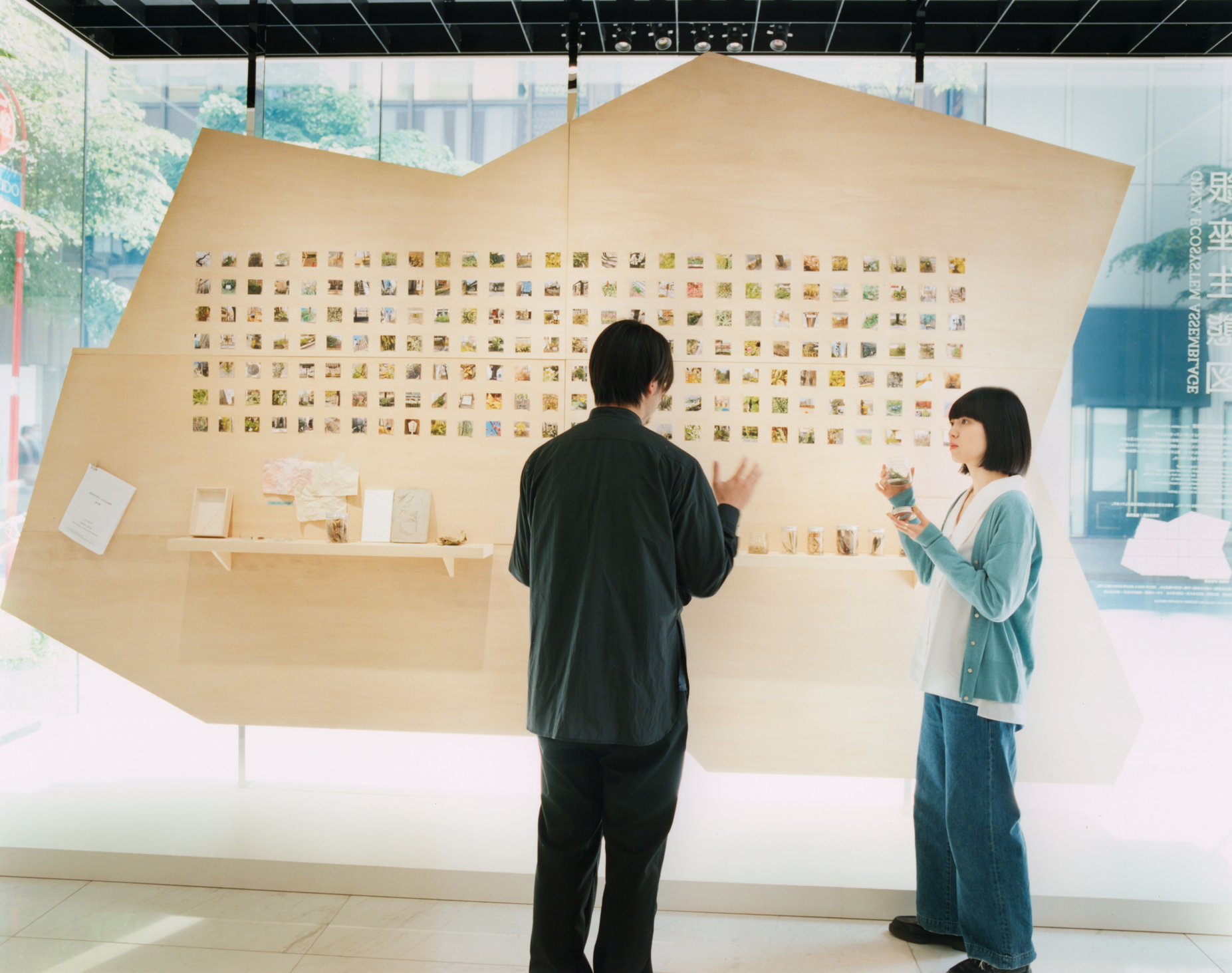 イントロダクションは、ウェブ花椿の「東京喫茶部」で数々の喫茶店を紹介している小谷実由さんです。銀座には喫茶店を目当てに足しげく通っているとのこと。今日は、資生堂銀座ビルで展示されているSHISEIDO WINDOW ART「銀座生態図」前に集合いただきました。この作品は、銀座の生態系から銀座の未来を考えよう、というテーマのもと作られたものです。そこで、小谷さんと一緒に銀座で自然散策をしながらお話を聞きました。