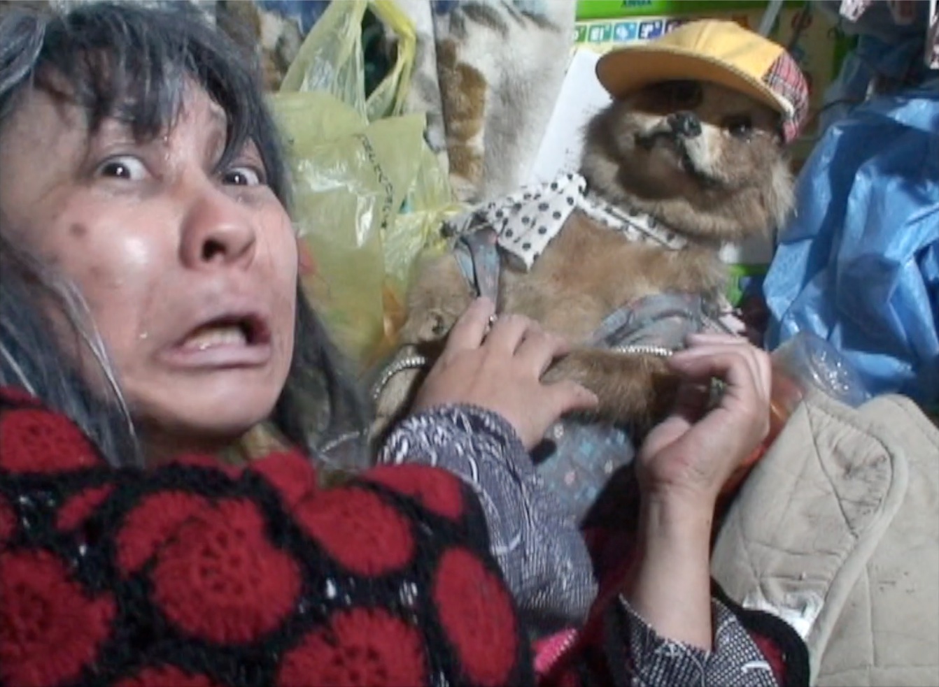 本作では、いわゆるゴミ屋敷に住む老女が、積もり積もったゴミにしか見えないモノを撤去しようとする役所の職員に向かって、「全部大事なものだ」と頑なに拒絶する様子が岡田自身によって演じられる。懐中電灯で照らされ、怯えながら吠えるそのパフォーマンスは真に迫るあまり漫画的で、当事者世代でなければ苦笑と共に「あるある」で済ませてしまうかもしれない。