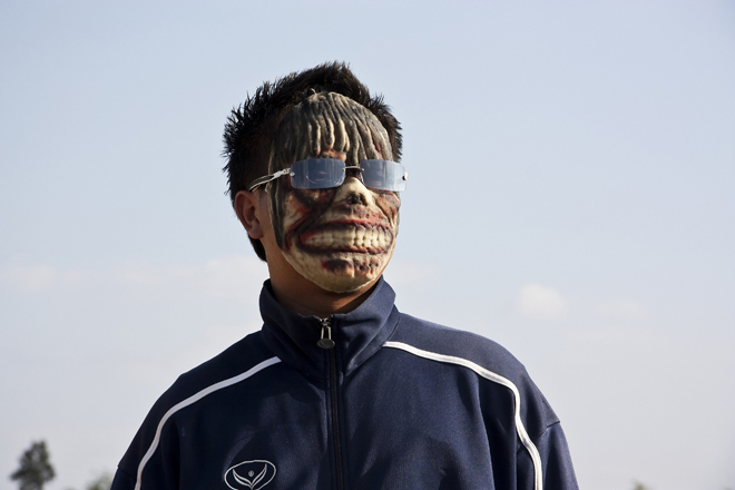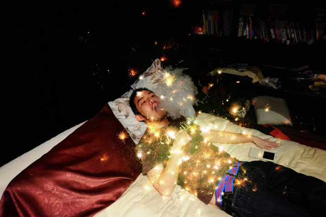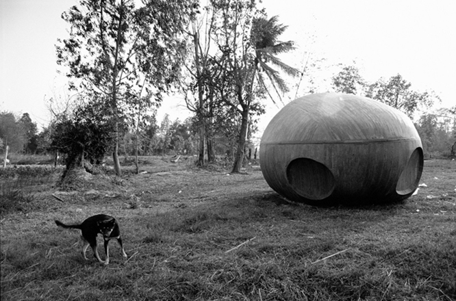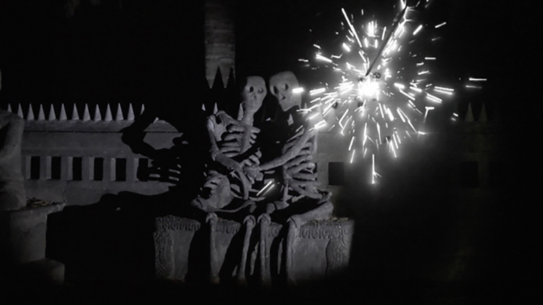 もうひとつの特徴が、ユーモアのようなファンタジーを仕掛けていることだ。たとえば《花火(アーカイヴス)》では、闇夜にたたずむ老齢の男女が、花火の閃光によって白骨の彫刻に姿を変えたりする。実は舞台となる寺院の開祖は赤狩りにあっていて、彫刻は政府の抑圧への抵抗を表しているそうだが、彼はインタビューでも、母国の軍政の腐敗や暴力への明らかな嫌悪を吐露していたりして、かなり社会的な意識を持っていることがわかる。ただ、そうした感情や思想は、直接ではなく、ある種のファンタジーを通して表されている。それこそ創作に許された武器であることを、彼は知っているのだ。