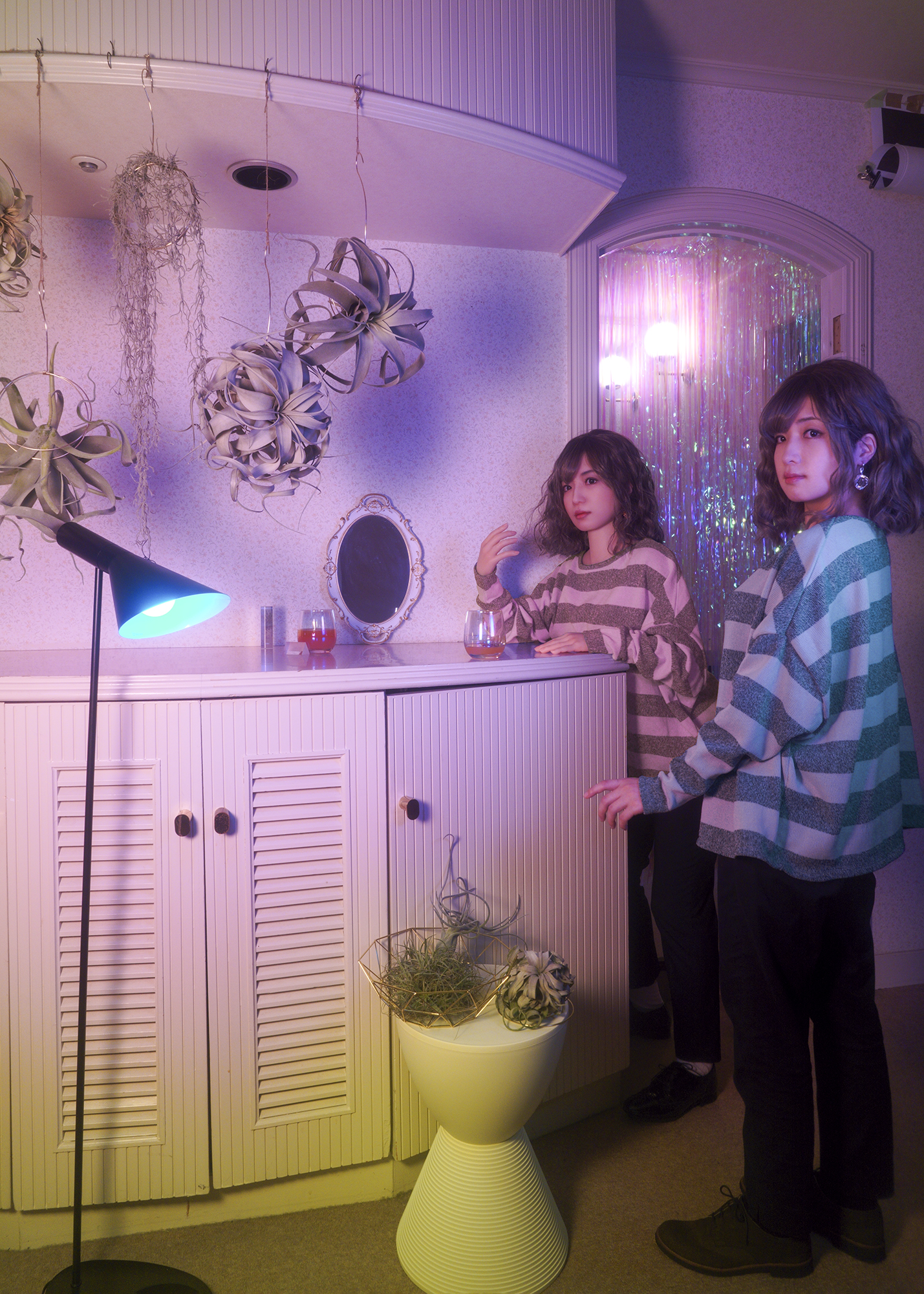 「今回の写真作品は一見仲のよい姉妹に見えるかもしれません。でも一歩踏み込んでよく見ると何かが違う。微妙に見分けがつくような要素をあえて残しています。実際の双子のように付き合いの深い友人には分かるほどのわずかな違いです。同じように、ラブドールのどこか人間らしくない容姿にも、言語化できない抽象的な違和感があるんです」(菅)