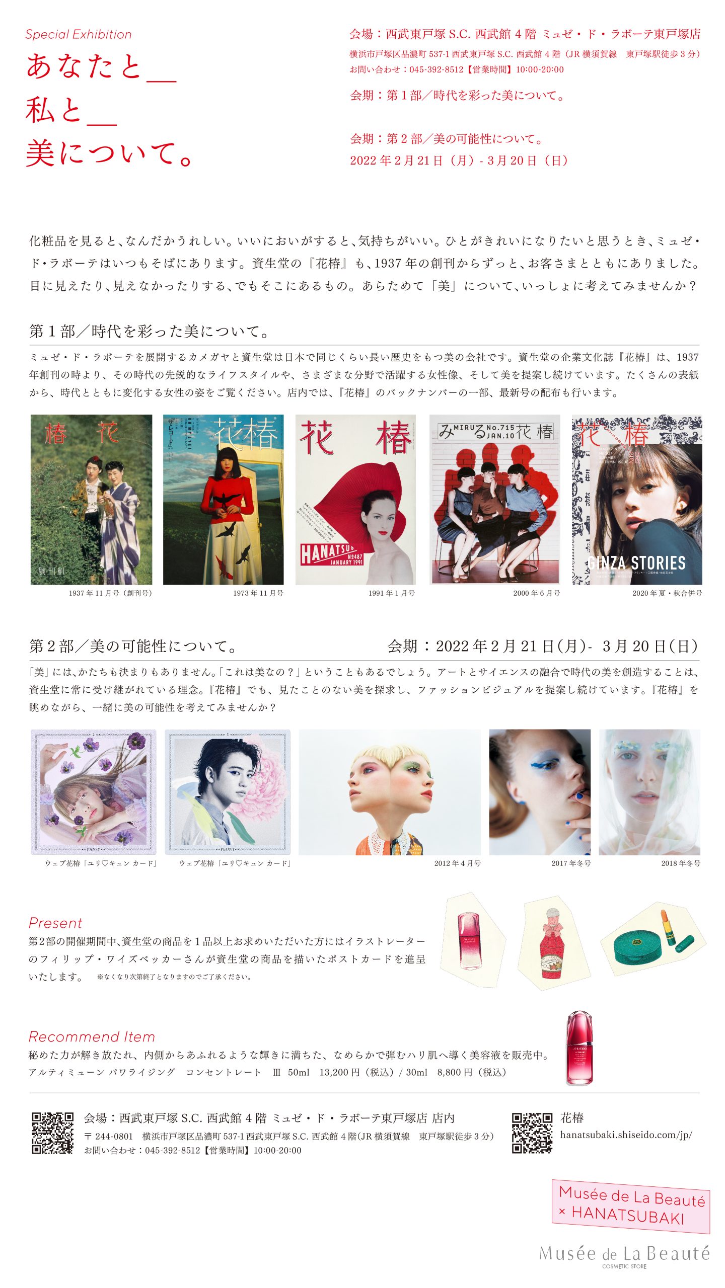 1月21日(金)より、西武東戸塚S.C. 西武館 4階ミュゼ・ド・ラボーテ東戸塚店の店内にて、『花椿』のバックナンバーを展示するスペシャルエキシビションが開催されます。