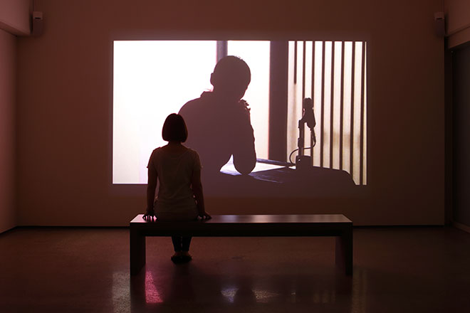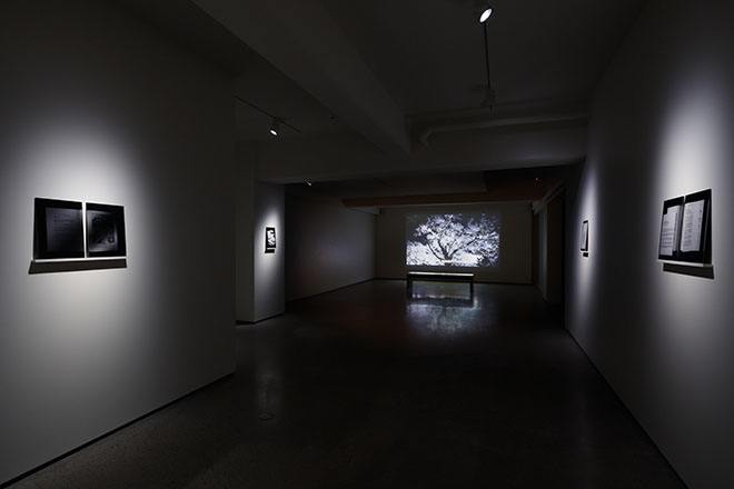 彼が5年前から継続しているシリーズ作〈American Boyfriend〉のひとつを、私は以前見て、これは美術ではなく文学だと直感した、と書いたことがある(その後このシリーズは『文藝』誌で二度、中篇小説の形で本当に発表された)。冒頭の映像作品と同じ名前がつけられた、銀座・ギャラリー小柳での今回の展示も、その連作のひとつだという。映像では20世紀初頭から大戦後にかけて生きた5人の女性にまつわる話を、アメリカ、東京、再びアメリカ、太平洋上、熊野、と舞台を移しながら描いている。歴史という大きな軸を縦糸に、それぞれのナショナリティとアイデンティティが横糸にわたされ、プライベートなテリトリーから大きな物語を仰ぎ見る作品だと言えるだろうか。