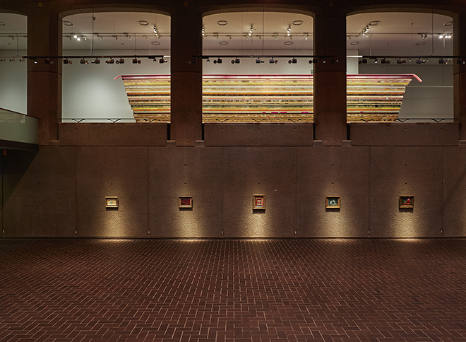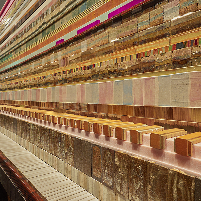 なぜピンクなのか。なぜ縦に、2センチくらいだけなのか。それはこの、国内外で長いキャリアを持つ稀有な作家にしかわからない、言ってみれば魔法のようなものだ。彼にだけ与えられた天才だ。作品を見る人は、その秘密の残滓のようなものしか、うかがい知ることができない。けれど彼が施した創作に、緊張したり拒否されたりするのではなく、なじむようにして、その場にいることを許されている。ある秩序のなかにいることが実感できるのだ。逆に言えば、彼の創作は、からくりのわからない秩序へと、その場を調律している。彼にとって芸術とは、整えることなのかもしれない。