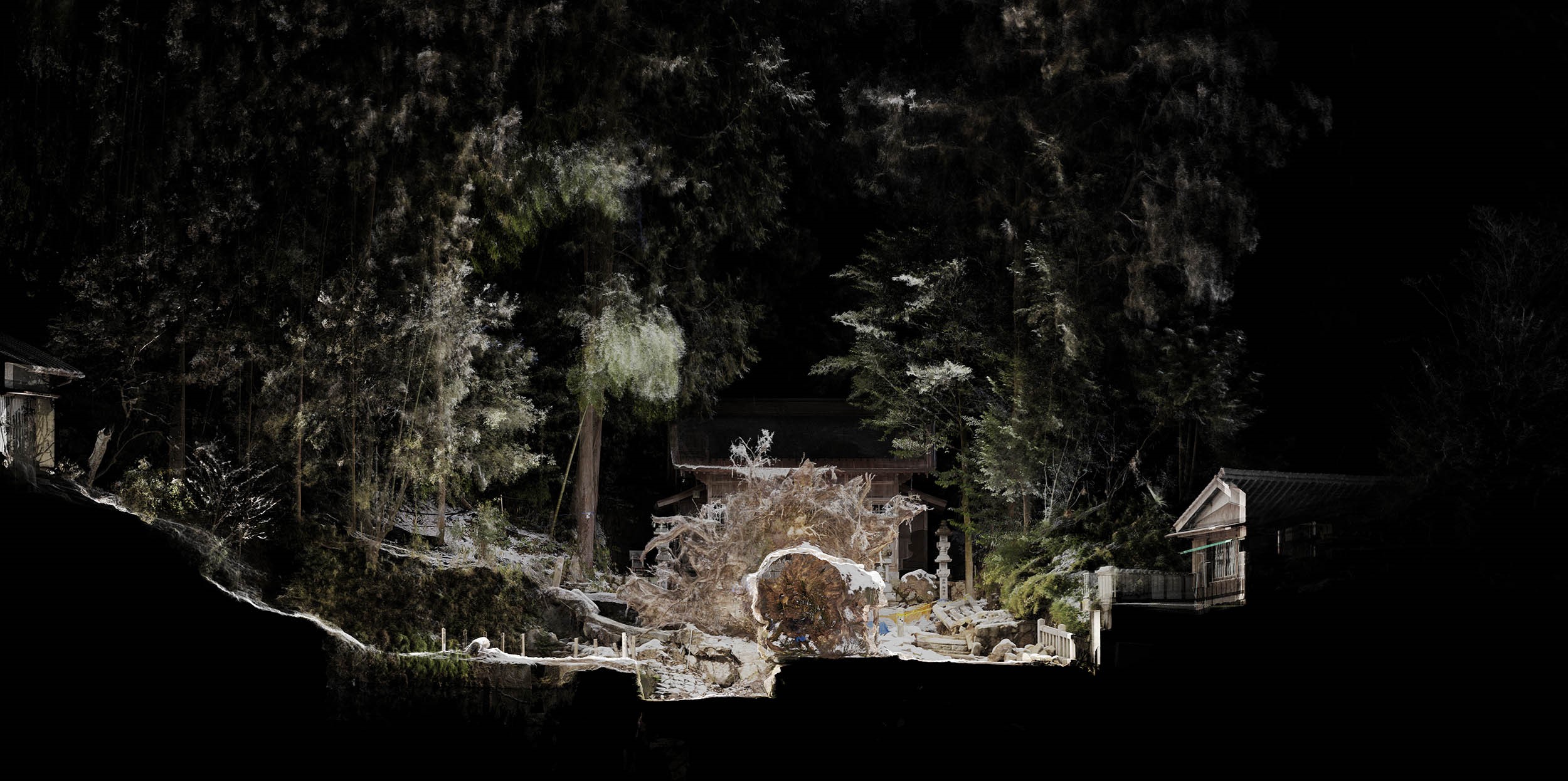 木の内部を空洞化・透明化したイメージで再現するスキャンという行為は、そこに内在する時空の追体験であり、「永遠に葬る儀礼」(佐藤)のようにも感じられたという。神木にまつわる歴史や状態をリサーチする過程で、自然信仰とその象徴性という自身の追い求めるテーマに対峙し、それを独自に深化させる目的そのものが作家にとって内面化していった表れともいえるだろう。