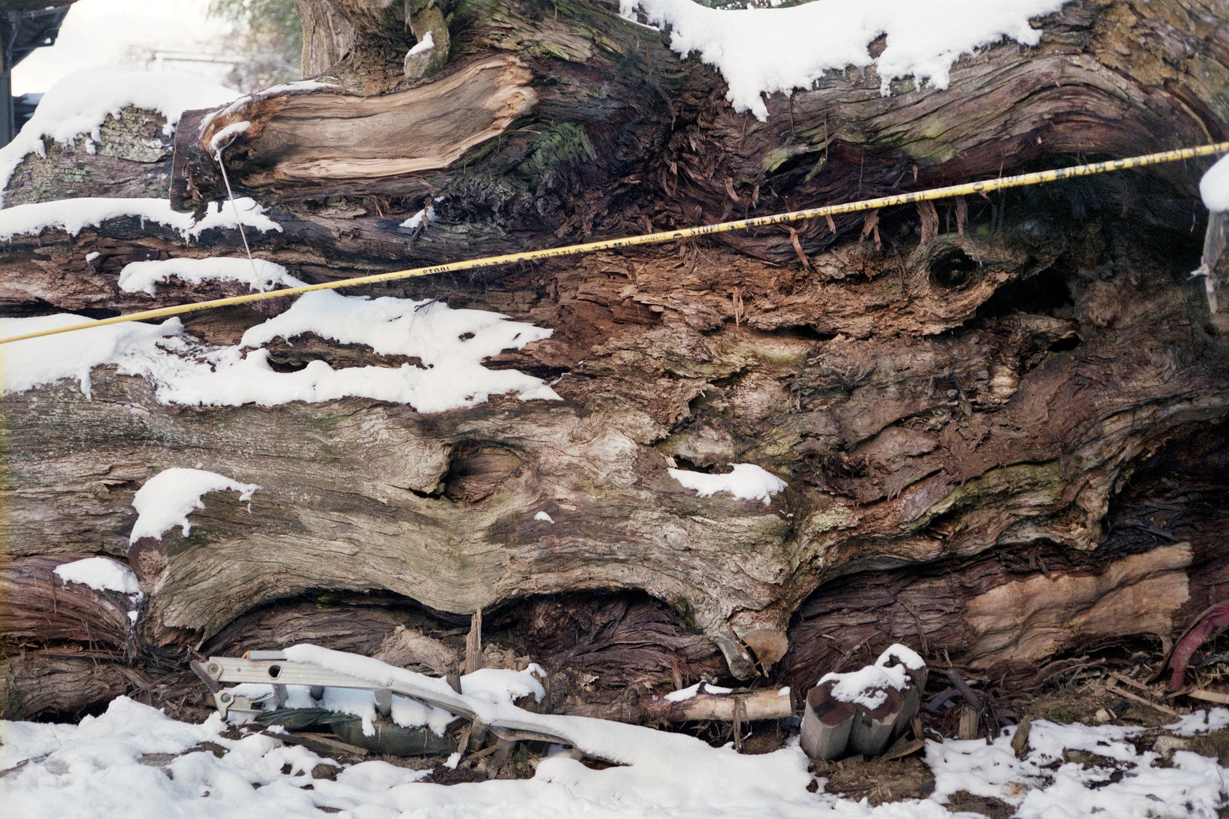 樹齢670年と推定されるこの大杉は、幾度となく風雨や落雷に見舞われながらも生き延び、太古から伝わる神籬(ひもろぎ)信仰の対象として住民たちの畏怖を集めてきた。これだけの巨木でありながら、ひとりの負傷者も出すことなく、近くの民家を避けるようにして樹体を大地に横たえたことも、あらたかな奇跡として受け取られたことだろう。