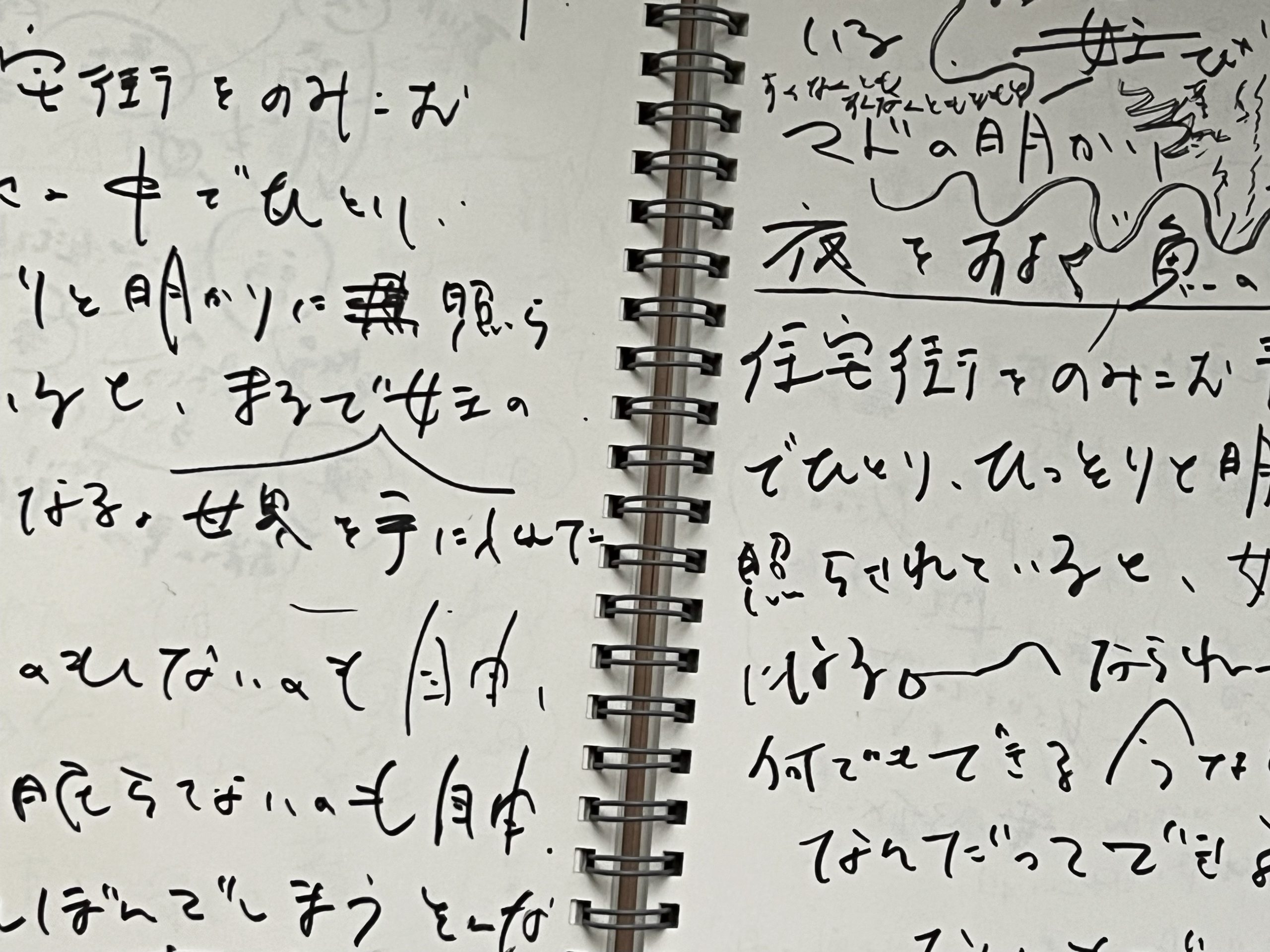 初めてflotsam booksに訪れた3月、うつくしさが漂流しているようなこの場所で、文章を展示したいと思った。私のiPhoneの中に眠る、行き場のない文章のスクリーンショットを、写真に見立てて飾りたい。そんな突拍子もない提案を「見たことないからいいと思います」と小林さんはあっさりOKしてくれた。しかしなかなか難しくどうしようと悩んだ末、"普段見ているごく個人的なもの"という共通点で、家のなかの風景と、ノートの走り書きを撮ったものと混ぜて並べたら、途端にスクショが写真らしくなった。家の風景も、書き留めておきたかった日々の思考や感情も、刻々と変化し失われていく。かつての瞬間を切り取って残すのが写真なら、私の文章の試みと、どんな違いがあるだろう。 ー内田紅甘