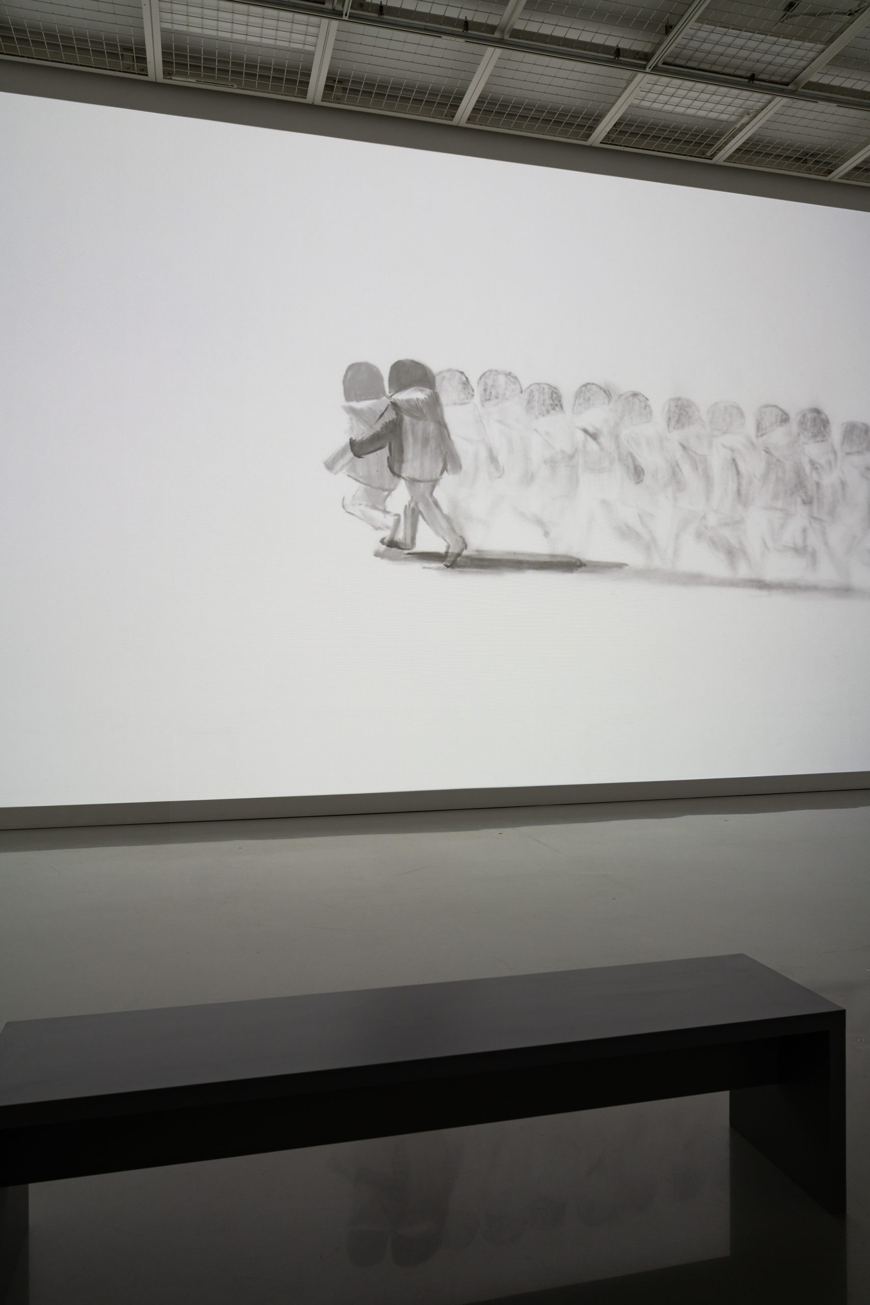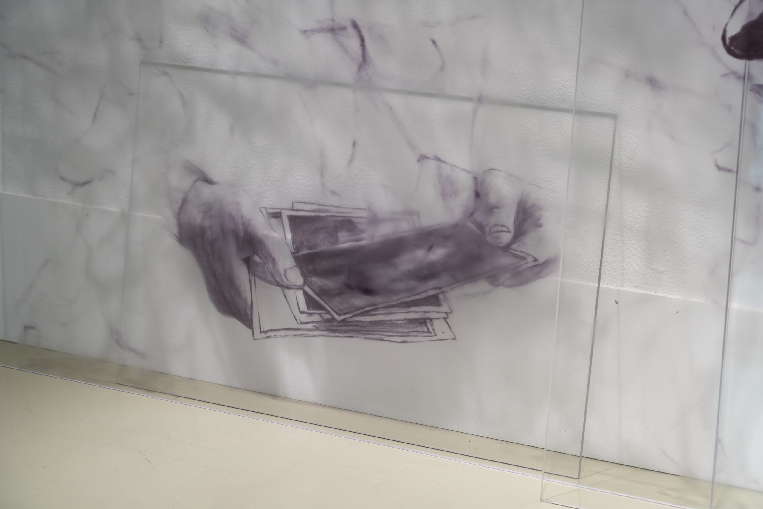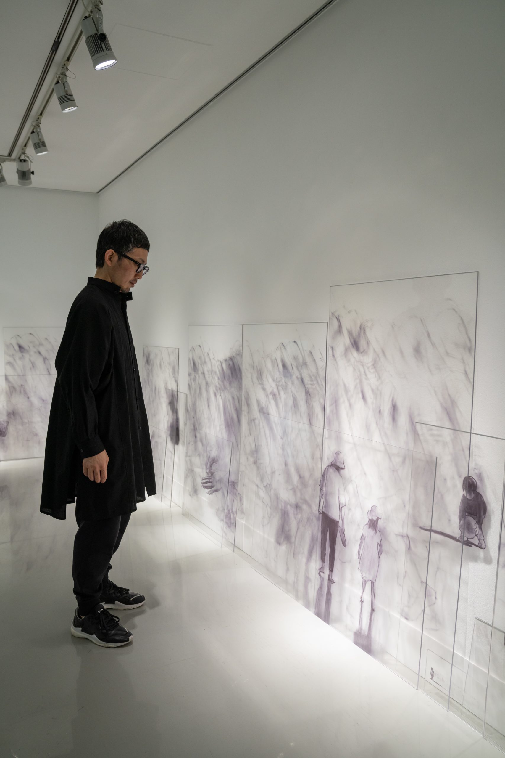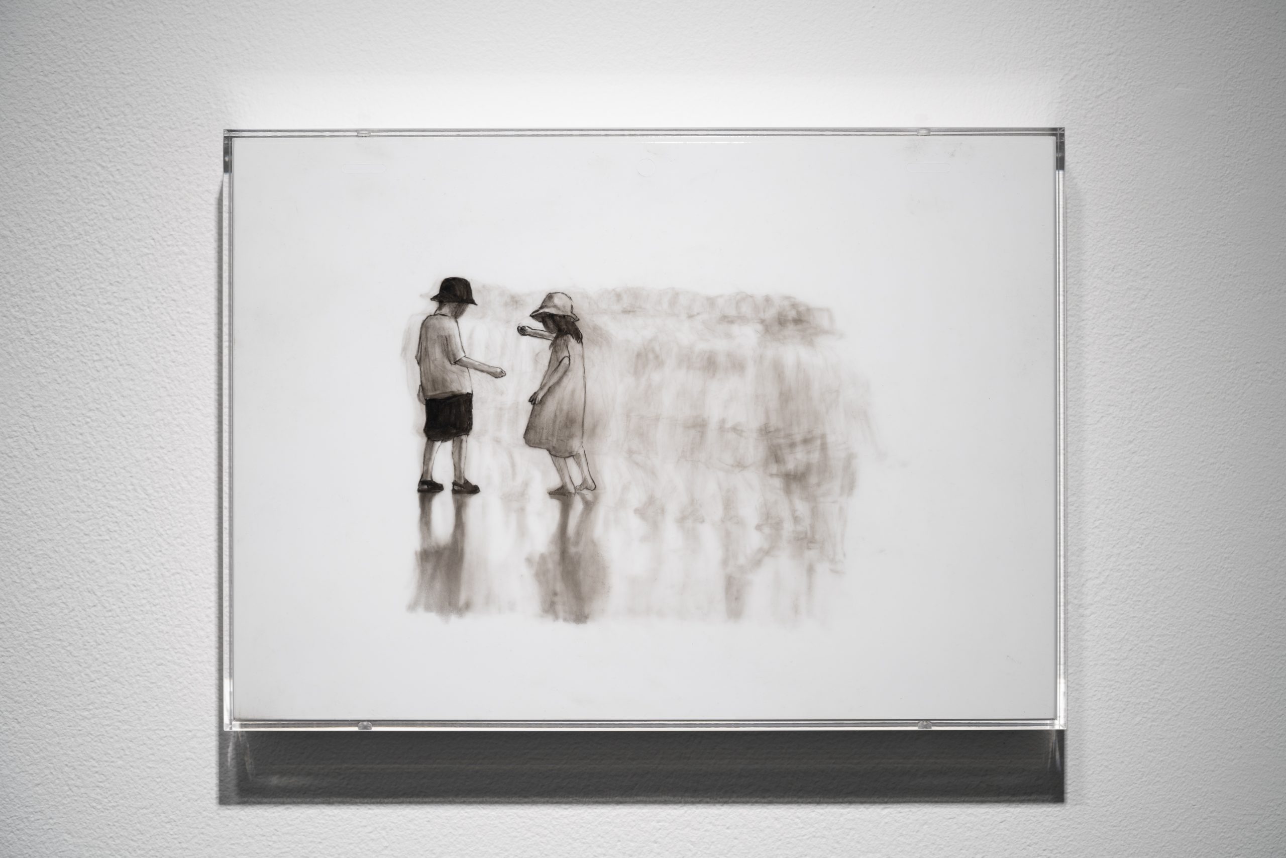 「僕の場合、描き慣れた画材であった木炭や鉛筆を使ってアニメーションをつくり始めました。その後、さまざまな画材の組み合わせの実験を経て、現在の半透明の紙に木炭で描くスタイルに行きつきました。現在もアナログで描いています。作画方法は、通常のアニメーションのように一枚一枚描く場合と、1枚の紙のみを使用し絵を描いて消すプロセスを撮影してアニメーションにする場合があります。後者は筆跡が残るのが特徴です。いつも複数の作品を同時進行しているので、今回の個展で発表する新作は2年以上時間がかかってしまいましたが、長時間かけて制作することの面白さを感じています。記憶を考えたり、絵が動いたとき、それがわかるんです」