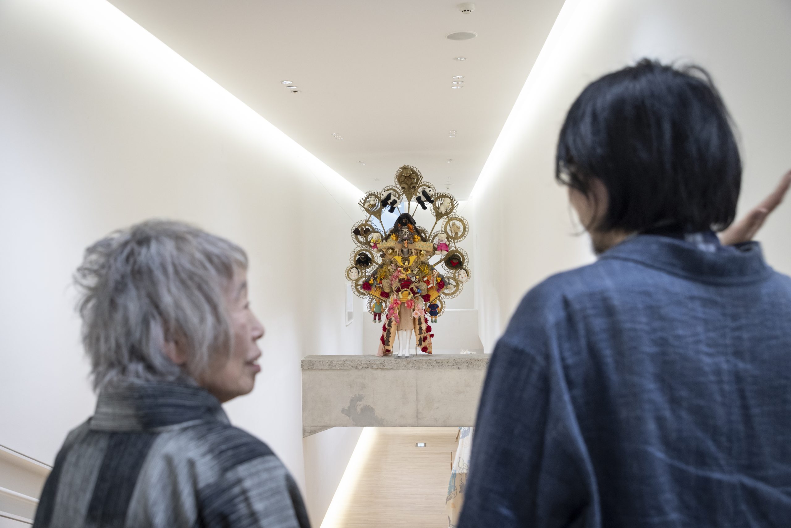 神話などからインスピレーションを得た物語的コレクションで知られる、山縣良和さんのファッションレーベル〈リトゥンアフターワーズ(writtenafterwards)〉。本展では、リトゥンアフターワーズのこれまでの歩みが紹介されるとともに、山縣さんが考える日本社会とファッション表現の〈いま/ここ〉が新作インスタレーションで表現されています。
