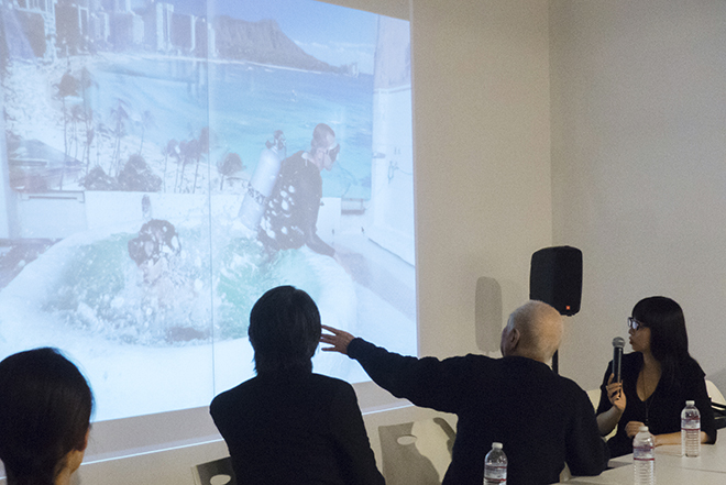 仲條 いいよね。これはね、現地で人気のある銭湯。そこの背景にハワイの写真を拡大して貼り付けたの。