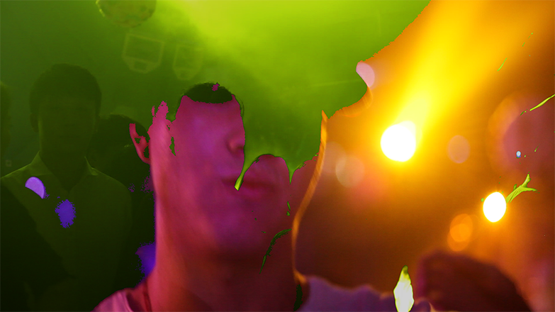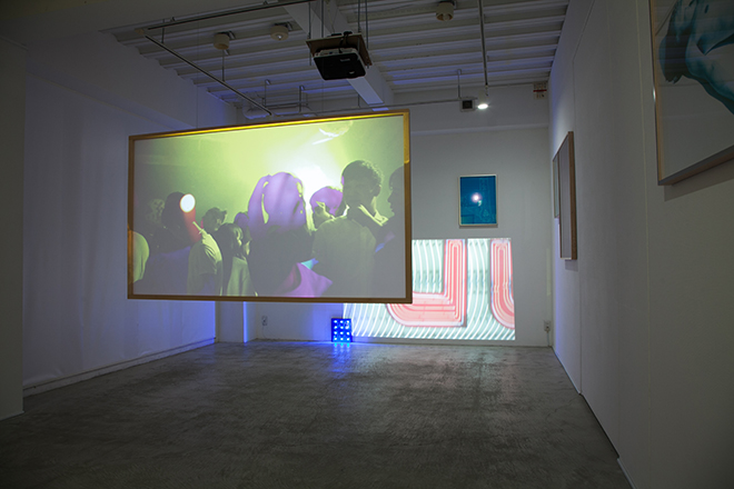 現在、恵比寿のG/P galleryで開催中の個展「JJuubbiilleeeee」ではまさに、細倉さんの現在地を示すように、本作『Jubilee』からの写真作品と新作の映像作品が織り交ぜて紹介されている。「展示内容にストーリーはありません。ジェンダーも少々意識はしましたが、もっと抽象的な感情がテーマです。感情の中でも名前のないもの、そういうものです」。スクリーンに投影された映像作品は時間軸が10倍に引き伸ばされたもので、スローなモーション、ゆらりゆらりと明滅する光の影、喧騒が引き伸ばされた音ともならない音が会場を妖しく包む。その全体感は次元と次元の間、イメージの中の世界に身を置くような感覚を覚えさせる。