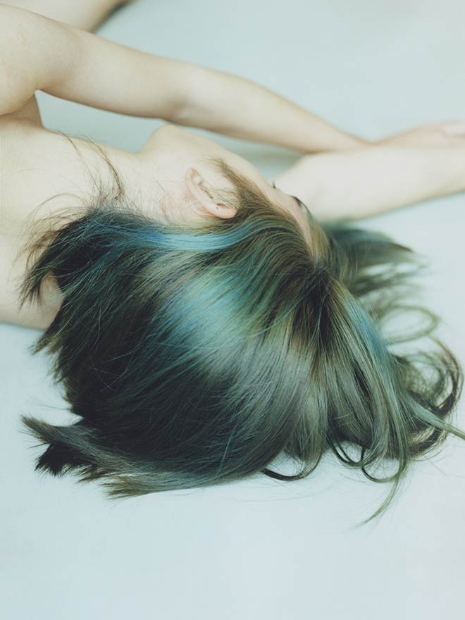 写真家、細倉真弓さんも今の時代の“Female Gaze”を体現するひとり。女性のヌードはあふれているのに男性のヌードがあまりないのはなぜだろう、という問いから発して、男性を被写体としたヌード作品を撮り始めた。ヌードといってもいわゆる肉感的・欲情的なそれではなく、細倉さんのヌード作品は一見男性か女性かわからないようなすっきりとしたからだを、独自の透明なブルーがかったようにみえる世界観を通して写したものである。その印象はなんというか、ピュアなのだ。