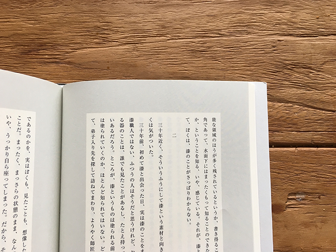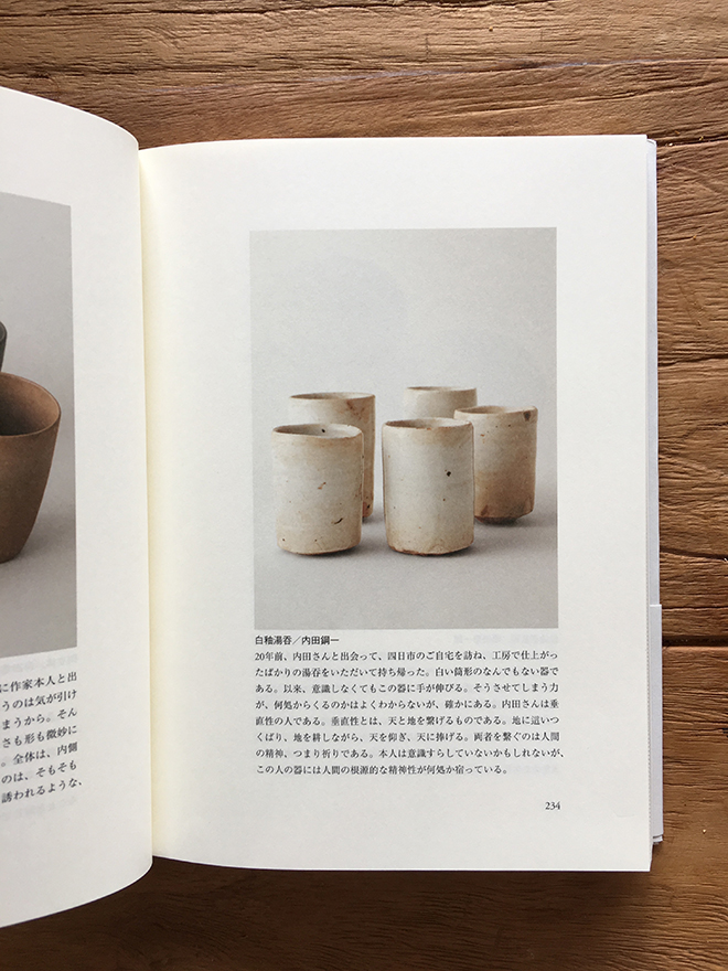 ぼくの内なる自然と、素材という自然を重ね合わせることである。(中略)その刹那に、自然の向こう側にある何か大きなものとの接続を感じる。そこが「美しいもの」が生まれる場所である(本書より)