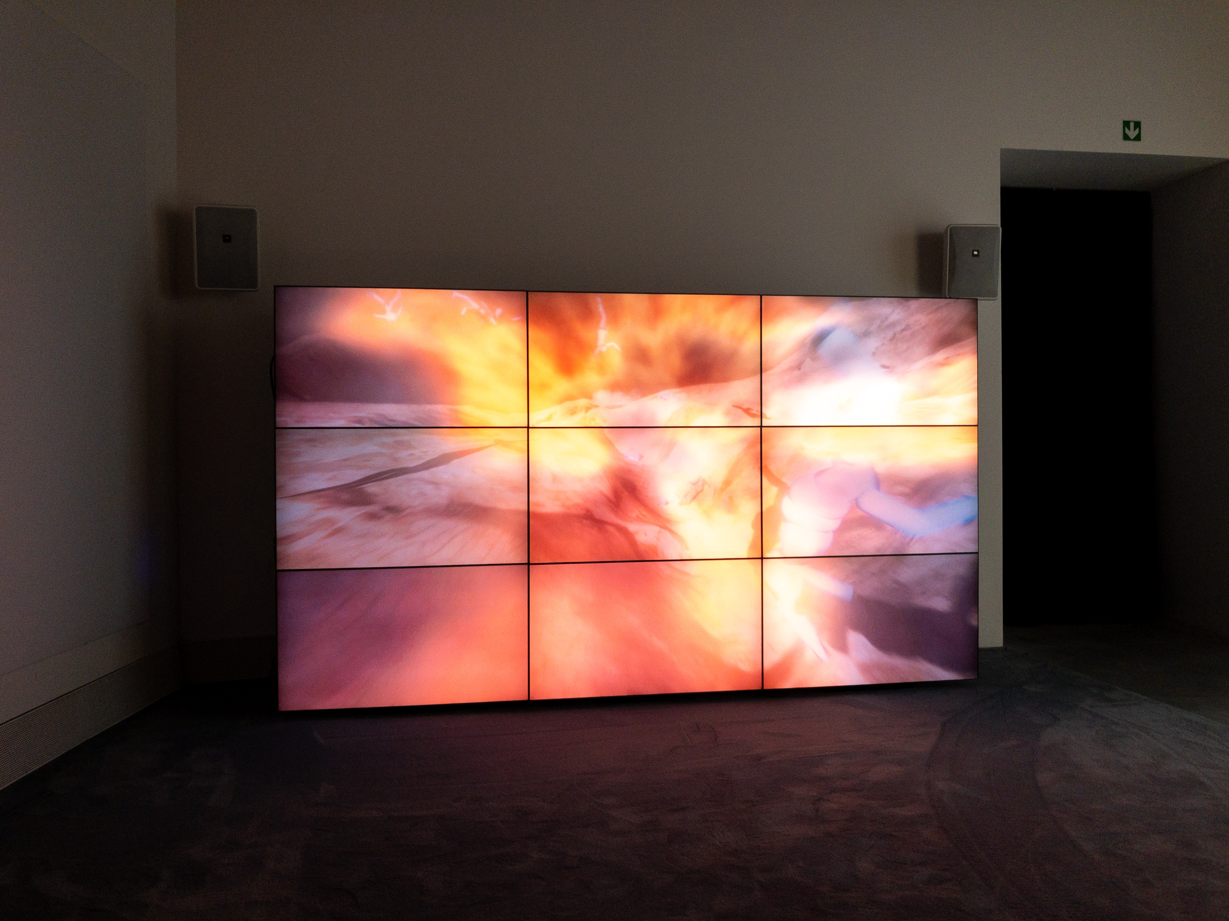 ローズマリー・トロッケルの新作、ジョン・ラフマン、ヒト・シュタイエルの新作映像。数年前にパレ・ド・トーキョーで見た1987年生まれのエイヴリー・シンガーによる、3Dモデリングデータを元にしたペインティング。クリスチャン・マークレー、エド・アトキンス……最高のアーティストたちが生み出した新作を次々と見て回る。日本で見られる可能性はとても低いし、アートフェアやギャラリーで販売・再現されない作品も数多い。ここでしか見られない貴重な作品をしっかり見ておこうと時間をかけてゆっくりと会場を歩く。メイン会場が終わったら公園内の国別パビリオンを巡る。フィンランド館は木のファサードが柔らかく美しく、こんな家に住みたいといつも夢想する。スイス館では「Moving Backwards」というLGBTQのダンサーたちが靴を逆さまに履いて踊る映像作品を見る。「我々は政府を代表してなどいない。後ろ向きに歩むことが前進となる、その戦術を取り戻し、今こそ自由を獲得するときだ」という掲示されたステートメントを読む。「今こそ自由を獲得するとき」。その文章が頭の後ろのほうにいつまでも残る。
