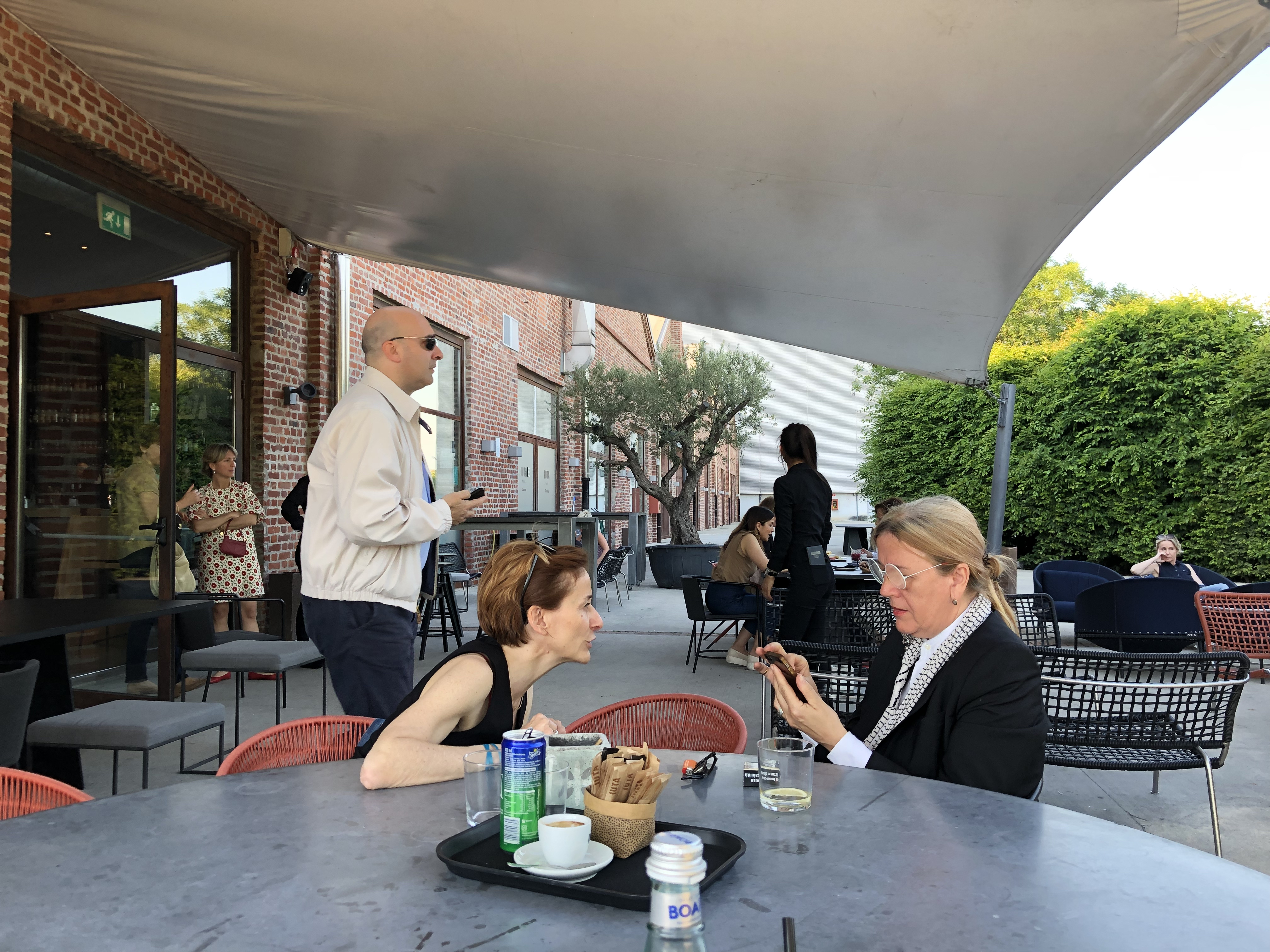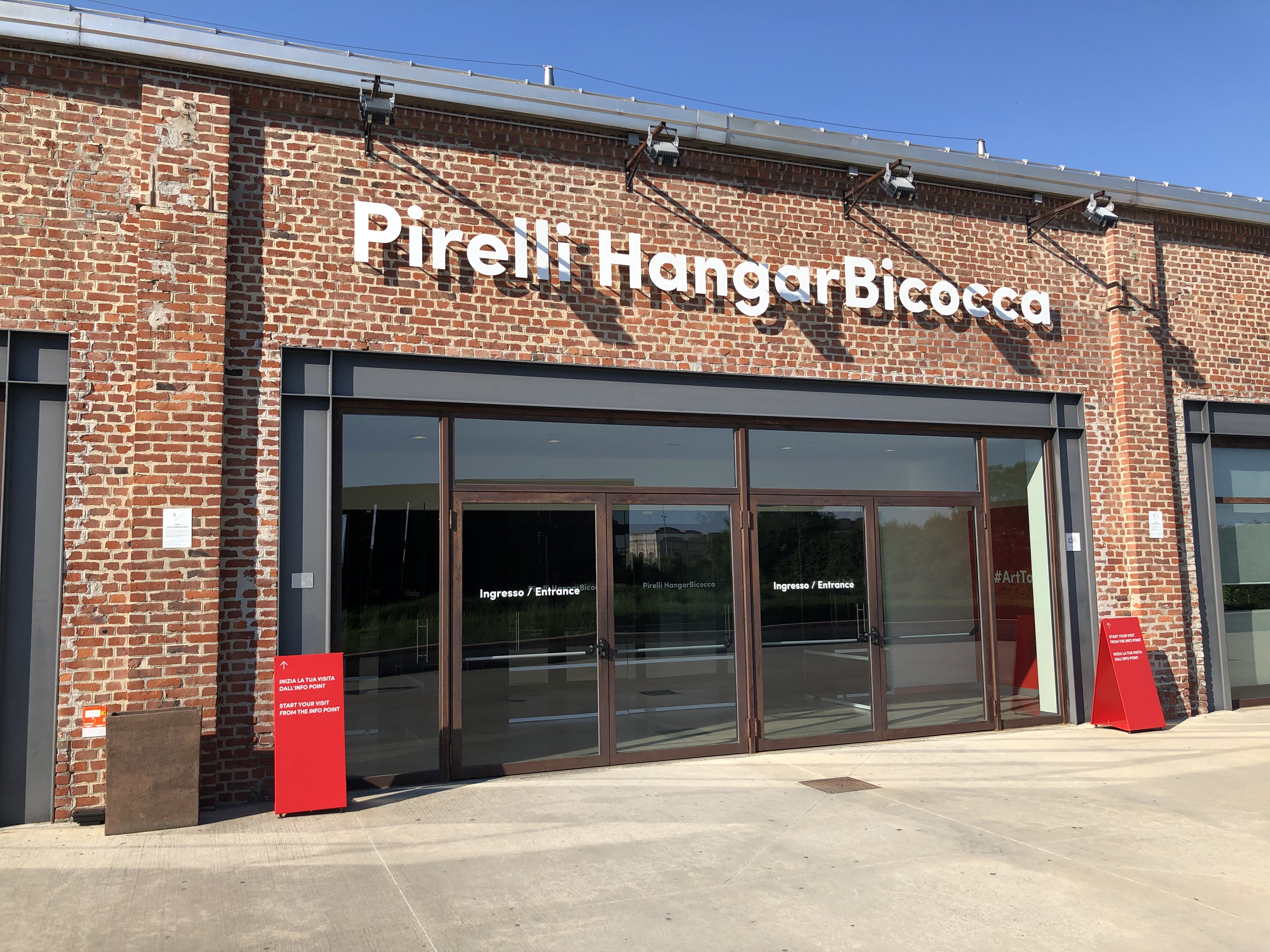 ミラノの中心を少し離れた工業地帯にある「ピレッリ・ハンガービコッカ(Pirelli Hangar Bicocca)」は2004年に建てられた巨大な現代アートセンターで、その面積は15,000平方メートルに及ぶ。館内の複数の部屋のそれぞれで巨大な規模の現代アーティストによる展示が行われている。メインの部屋、というか9,500平方メートルの巨大なスペースではドイツのアーティスト、アンゼルム・キーファーのインスタレーションが常設されている。見渡す限りの暗闇の中に7体、ぼうっとそびえ立つ、高さ20メートルはあるのではという 「I Sette Palazzi Celesti(天上の七つの宮殿)」には、この旅で見たどの作品よりも圧倒された。暑さのせいか、そのあまりの重いエネルギーのせいか、当てられてしまい、ふらふらと先に展示室を出て、カフェのテラスでソーダを飲むことにする。目の前に座って熱心に議論する、いかにもアート関係といった中年女性2人のかっこよさに、ぼうっと見とれてしまう。ミラネーゼ、という言葉があったが、ヴェネツィアにもモデナにもいない、ミラノにしかいない人種が確かにいるのだ。この街を少しずつ歩き進めると、そのような人に段々と巡り合う。世界が均一化している最中だからこそ、「その場所に生きる人」と出会い、言葉を交わすことこそが、人間が持続していく方法の一つではないかと、昼間の展示を思い返しながら考える。