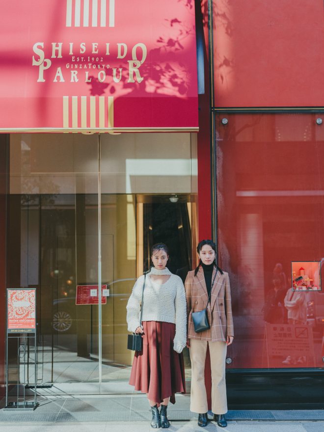 待ち合わせは、11月1日にリニューアルしたばかりの「資生堂パーラー銀座本店」前で。鮮やかな赤色が目を引くこのビルの地下1階に、お目当ての「資生堂ギャラリー」はあります。現存する日本最古の画廊と言われる同ギャラリー、現代美術を始め新しいアートのムーブメントを常に発信し続けるハブスポットです。
