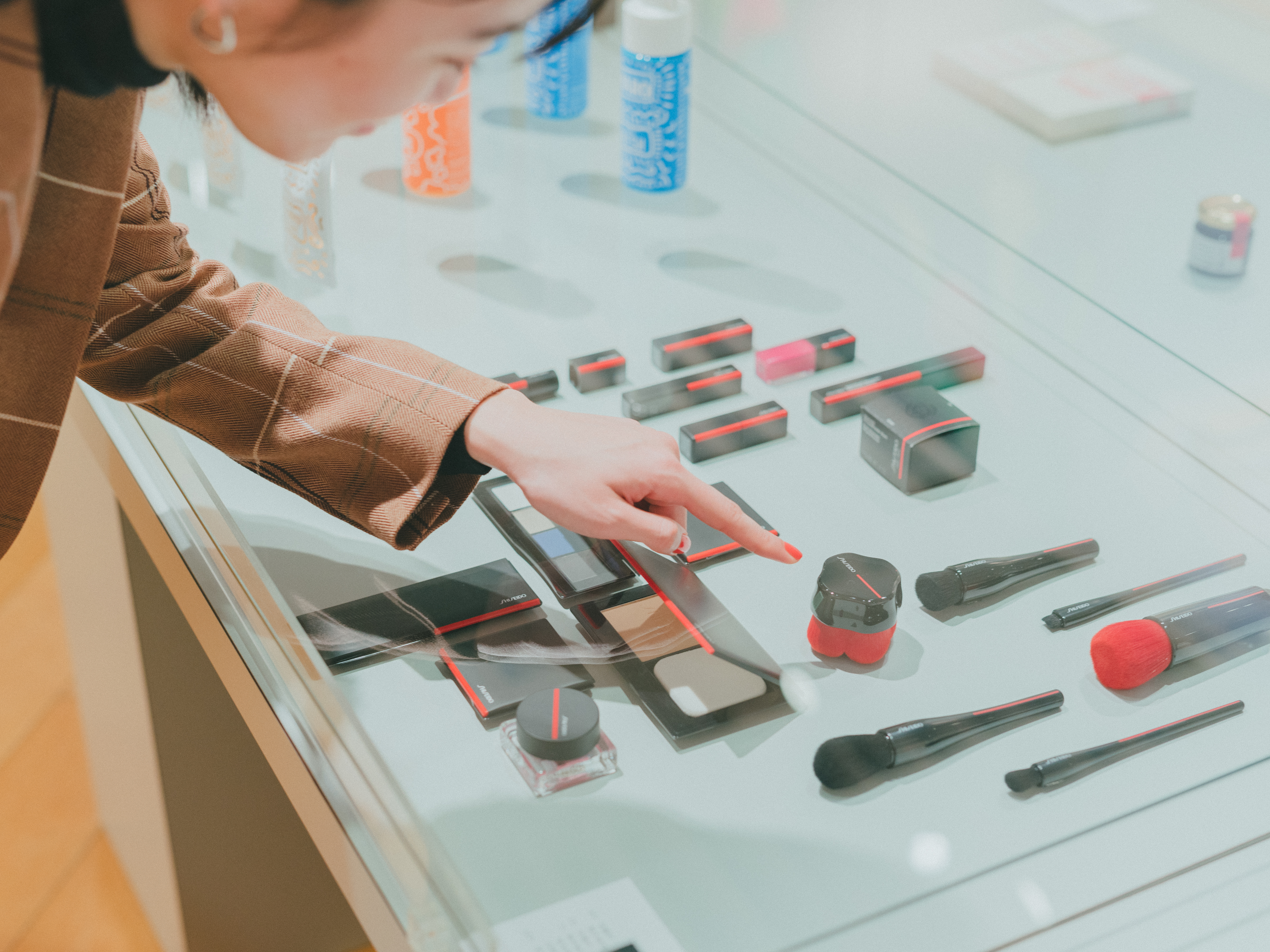 プロダクトコーナーでは、資生堂のメイクアップアイテムも発見。「なにげなく手にしたり使ったりしているメイク道具も、よく見ると確かに、どれも美しく計算されたむだのないフォルムばかりでグッドデザイン!」