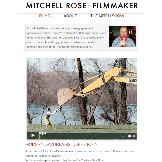 Facebookで、何人もの振付家が一つのダンスを踊るというビデオが投稿されていて、その作者のミッチェル・ローズというフィルム・メイカーのサイトをみたら、ダンスや身体表現にまつわる面白い作品がたくさん紹介されていました。