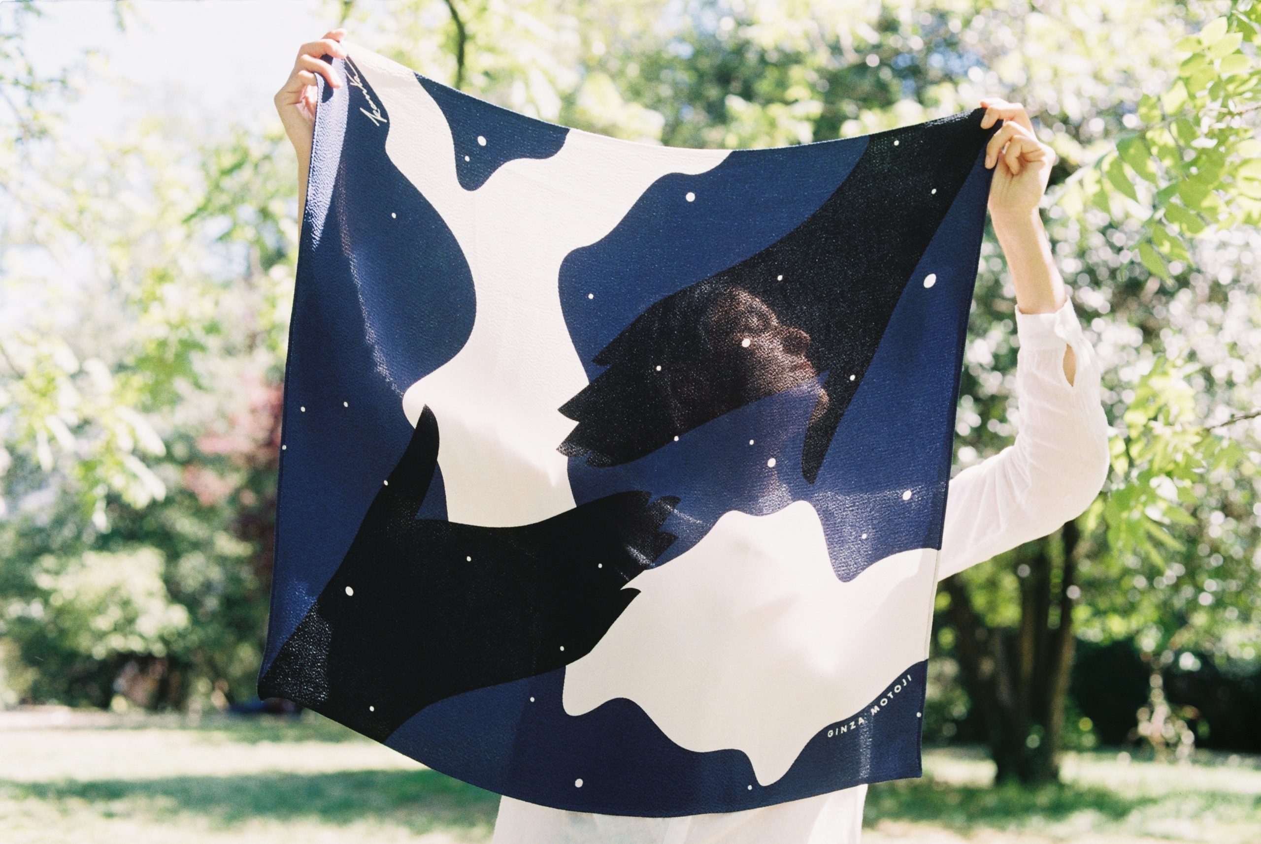 日本の美意識を表現した日本古来の文化であり、そしてサステナブルな生活のアイテムとして、近年注目されている風呂敷。今回、日本とフランスという二つのルーツをもち、ヨーロッパと日本の美意識を融合させたデザインで注目されるグラフィックアーティストのカンタ・デロシュさんが『繋がり』をテーマに風呂敷をデザインしました。この風呂敷は銀座の呉服店「銀座もとじ」の40周年を記念して制作されました。