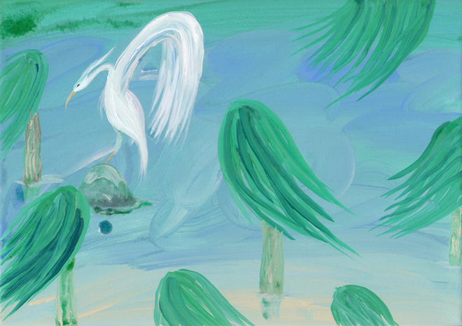 主人公の独語で構成される『化鳥』は、母と橋のたもとで暮らす貧しい少年の話である。文中少年が、人間と動物、植物の区別なく素直に触れ合う様子が印象的だ。普段接している自然と、人間世界にある権威とを比べて、自分が正しいと思うことが正しい、自分の世界ではどんなことも真実になりうることを教えてくれる。その中に少年を大きく見守る母親の存在があり、二人の対話は微笑ましく、時に大人もたじろぐような鋭い観察眼を持った少年の言葉も、母の俗世を超越した優しさの中に包まれ、読む側も安心を覚える。自然に対する好奇心がすぎるあまり、人間以外のものと会話できると思っていた幼い私は、この物語に承認を得た気がしてとても嬉しかったことを覚えている。