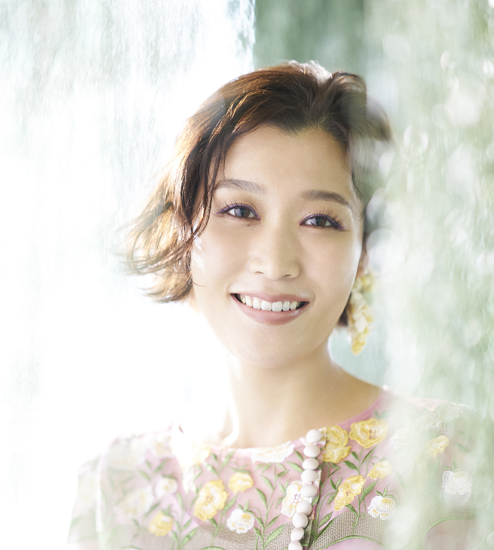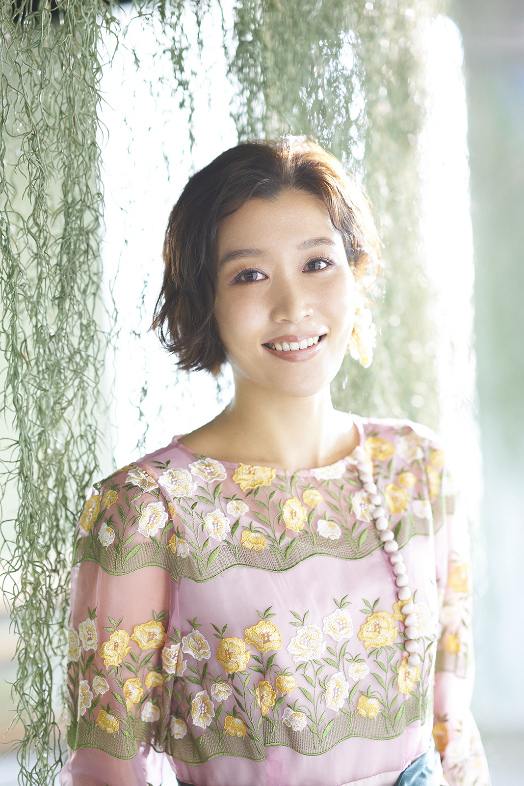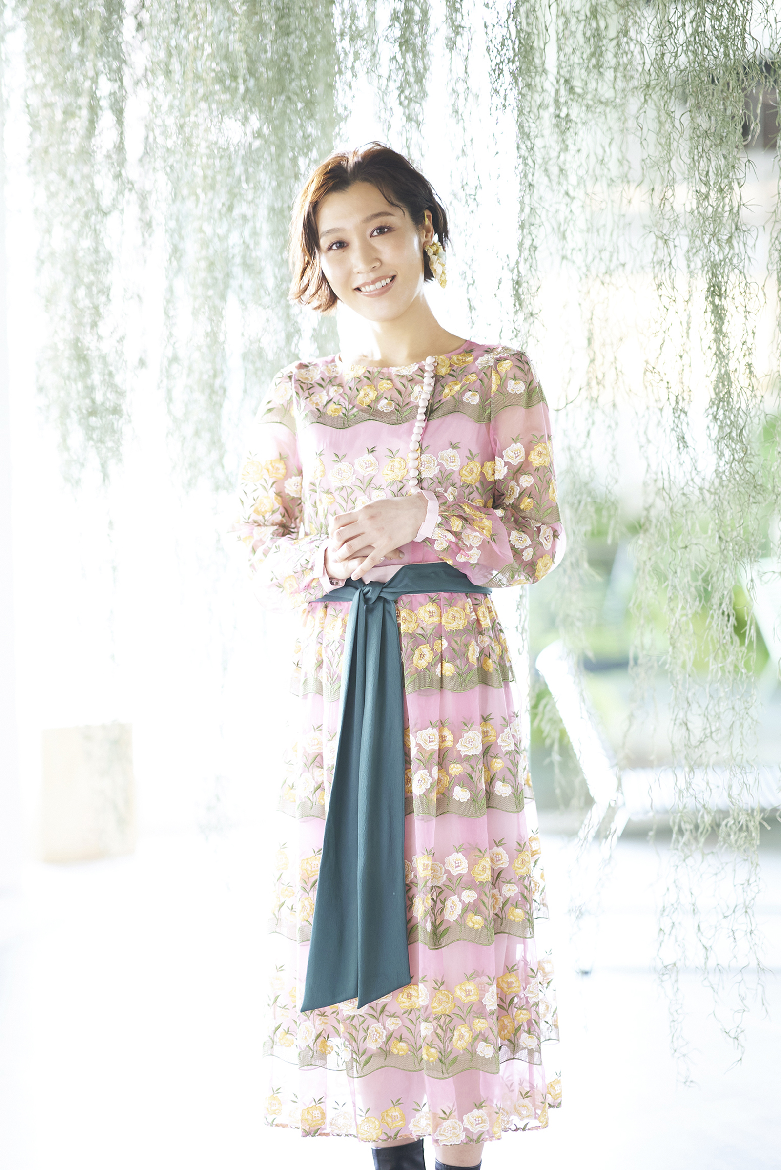 柔らかな日差しに、新緑が映える季節になりました。今回、チョイスしたワンピースの柄もまさに春爛漫。「ピンクベースに花柄がデザインされたフェミニンなドレスとの相性を考えて、メイクはヘルシーさを前面に打ち出しています。大人の女性の上品な丸みからくる甘さと、フレッシュな輝きとつやを上手に組み合わせることで、しおりさんの魅力を引き出すよう心がけました」と、メイクを担当するSHISEIDO THE STORE ヘアメイクアップアーティスト 尾花純子さん。