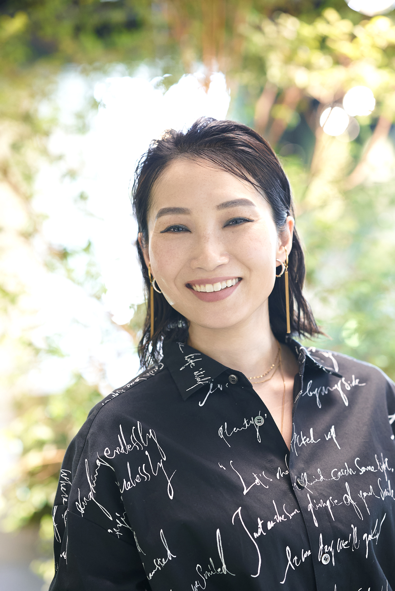 「今日のようなデザイン性が高くクールな印象のシャツは初めてでしたが、袖を通してみて、ファッションとメイクのバランスの重要性をあらためて実感しました。どこかに、抜け感をつくるって大事ですね」と、やすこさん。BCとしての店頭活動については、「ちょうど今、会社の研修制度でパーソナルカラーアナリストの講座を受講しています。入社して10年以上が過ぎましたが、お客さまに対し、よりパーソナルなご提案ができるよう、スキンケアもメイクも共に技術、知識を研鑽したいと思っています」と話してくれました。