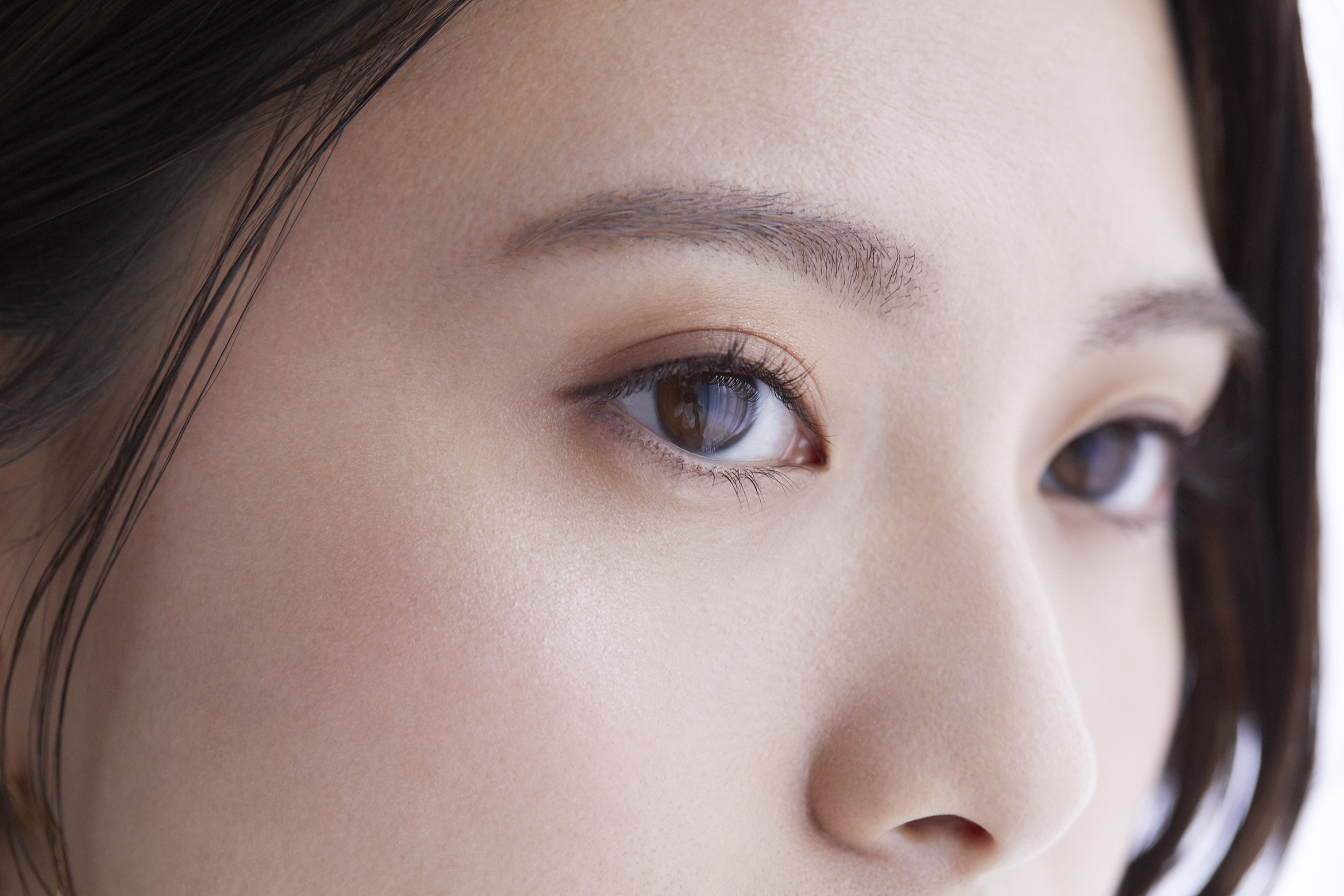 目もと全体のベースはSHISEIDO エッセンシャリスト アイパレット Miyuki Street Nudes/01。パレットの右から2番目のベージュをアイホールに、パレットの一番右の赤系のカラーを二重幅にONして目もとを引き締めます。目尻にはSHISEIDO カジャルインクアーティスト Azuki Red/04 の赤褐色、下目尻にSHISEIDO カジャルインクアーティスト Lilac Lotus/02 の青みピンクを引き、より印象的な瞳に仕上げます。