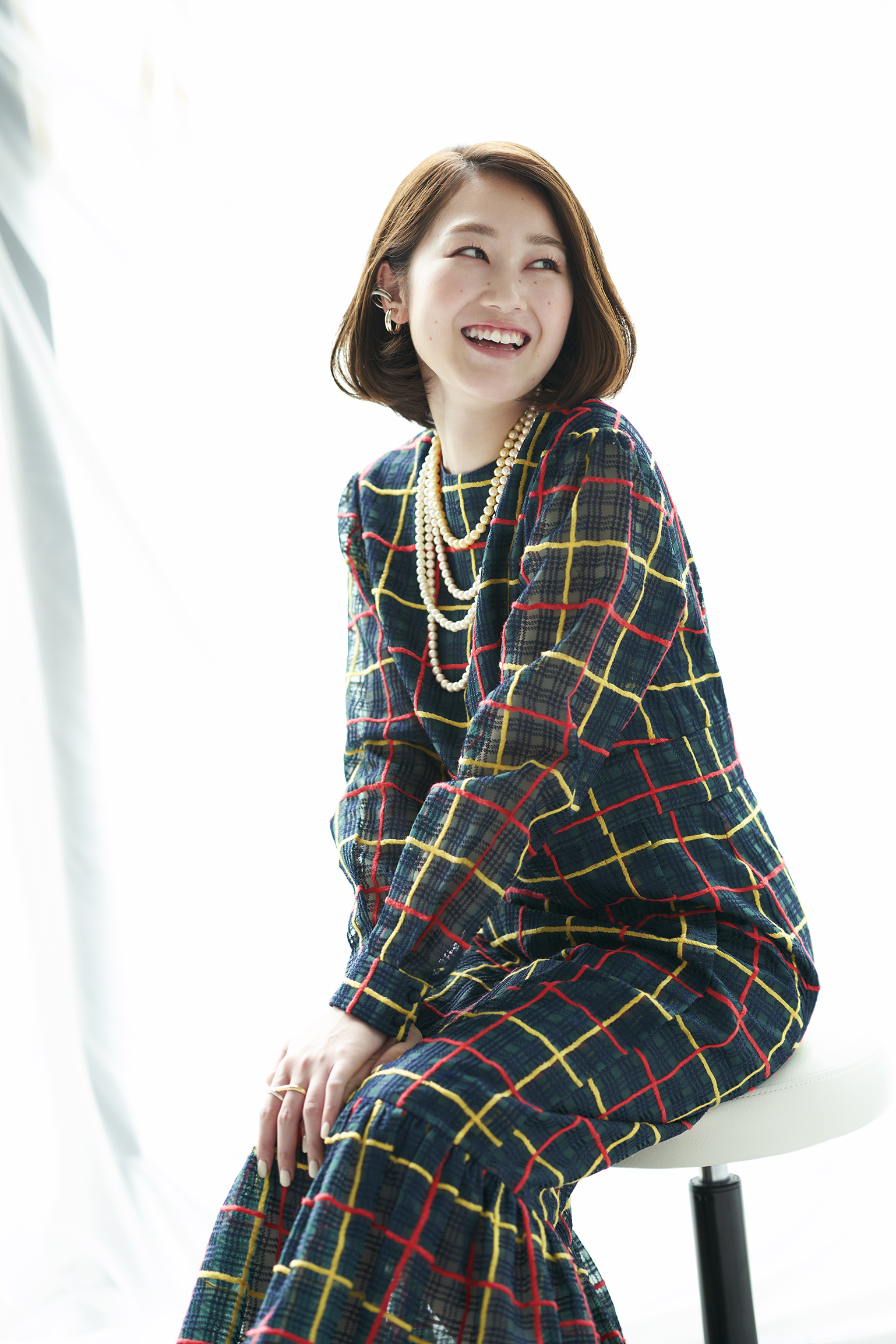 オーガンチェックピンタックワンピース ¥62,000+tax ADELLY(Office Surprise)(03-6228-6477)/ トゥーリング ¥16,000+tax カドルカフス ¥20,000+tax すべてJouete (0120-10-6616)